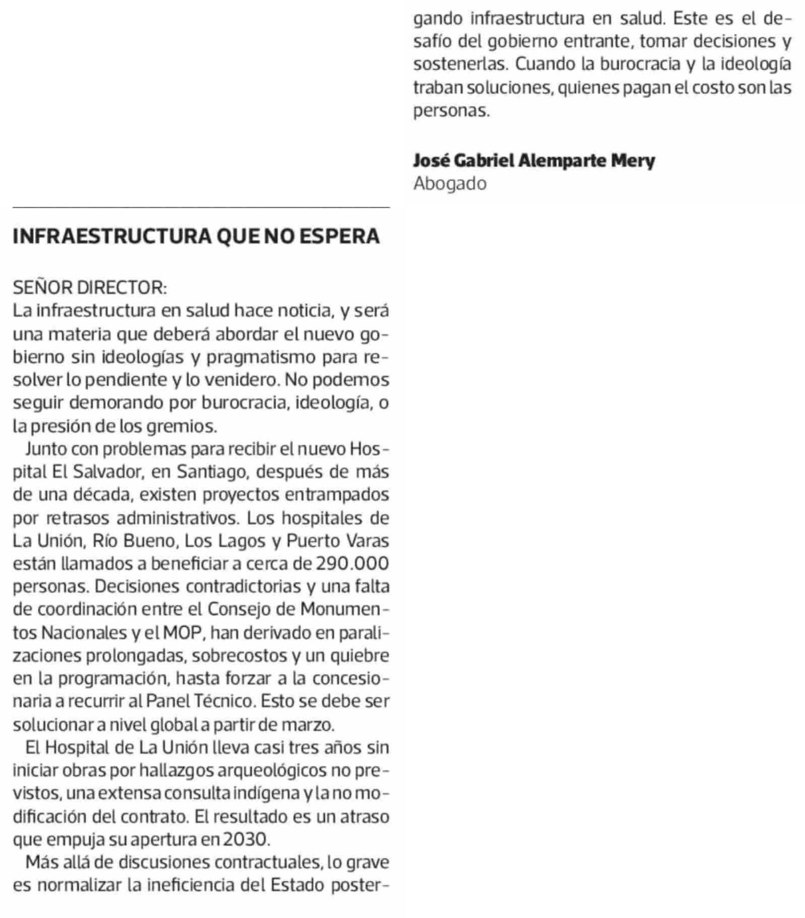 CARTAS: INFRAESTRUCTURA QUE NO ESPERA