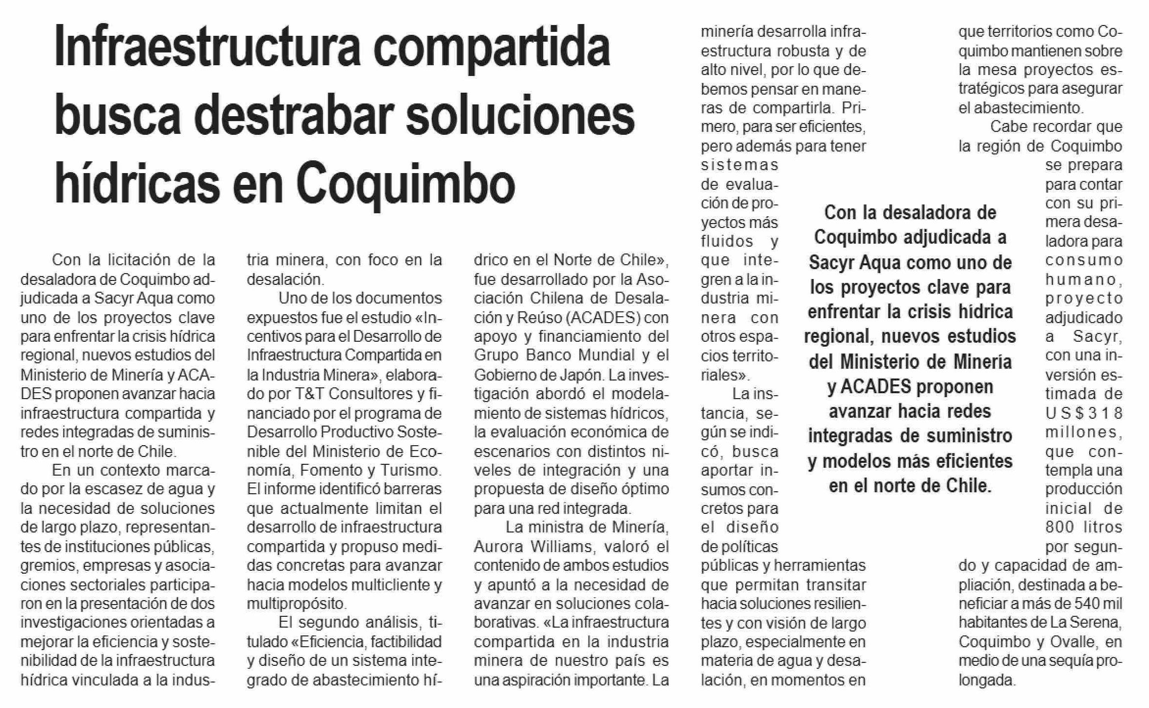 Infraestructura compartida busca destrabar soluciones hídricas en Coquimbo