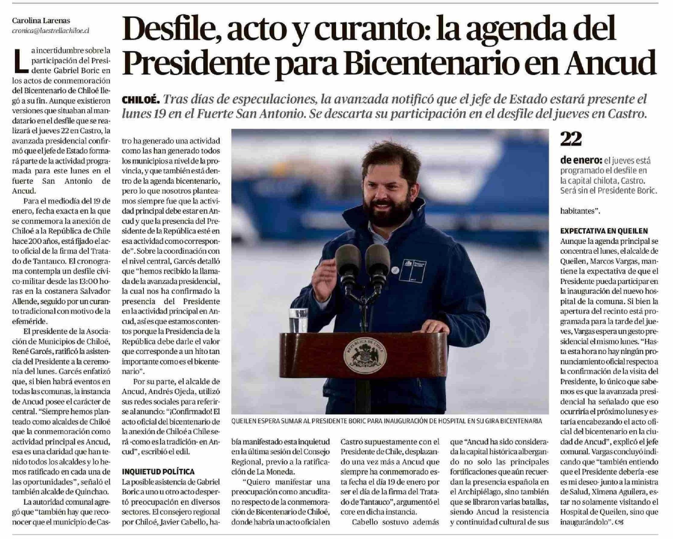 Desfile, acto y curanto: la agenda del Presidente para Bicentenario en Ancud