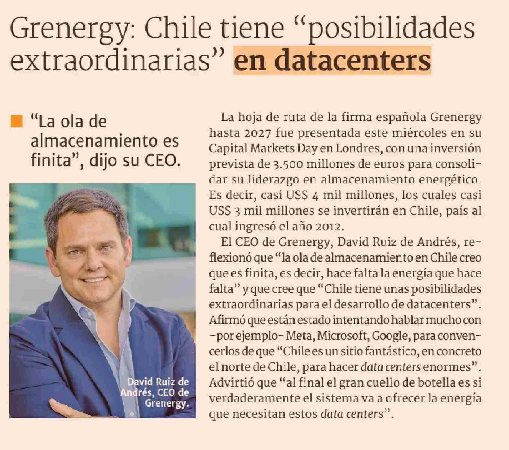 Grenergy: Chile tiene “posibilidades extraordinarias” en datacenters