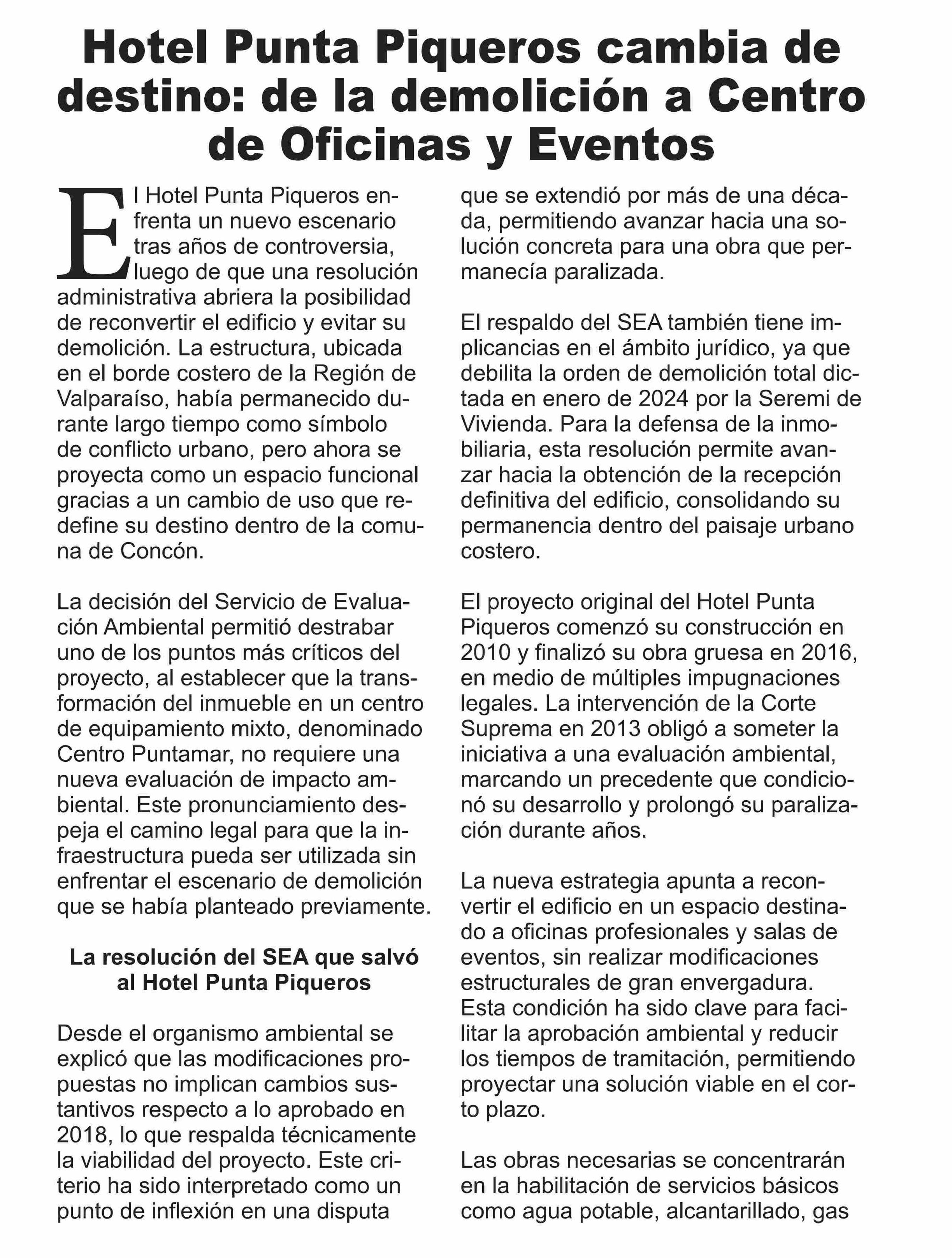 | Título: | Hotel Punta Piqueros cambia de destino: de la demolición a Centro de Oficinas y Eventos |