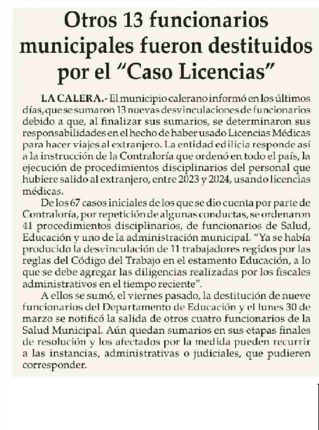 Otros 13 funcionarios municipales fueron destituidos por el “Caso Licencias”