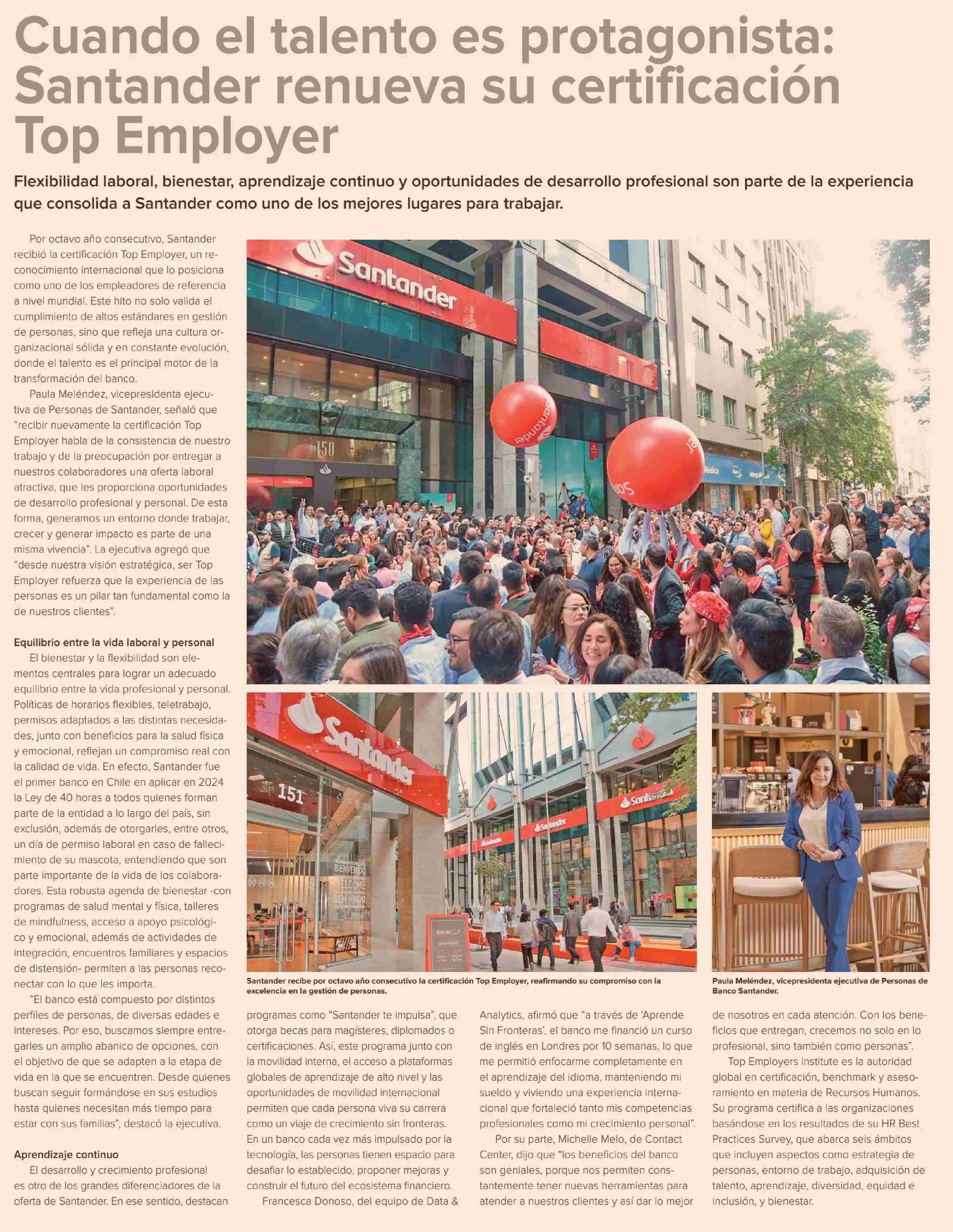 Cuando el talento es protagonista: Santander renueva su certificación Top Employer