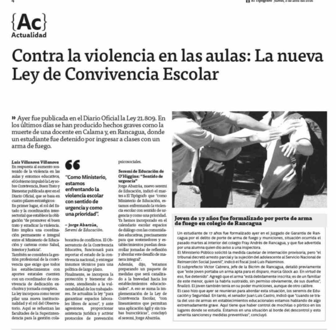 Contra la violencia en las aulas: La nueva Ley de Convivencia Escolar