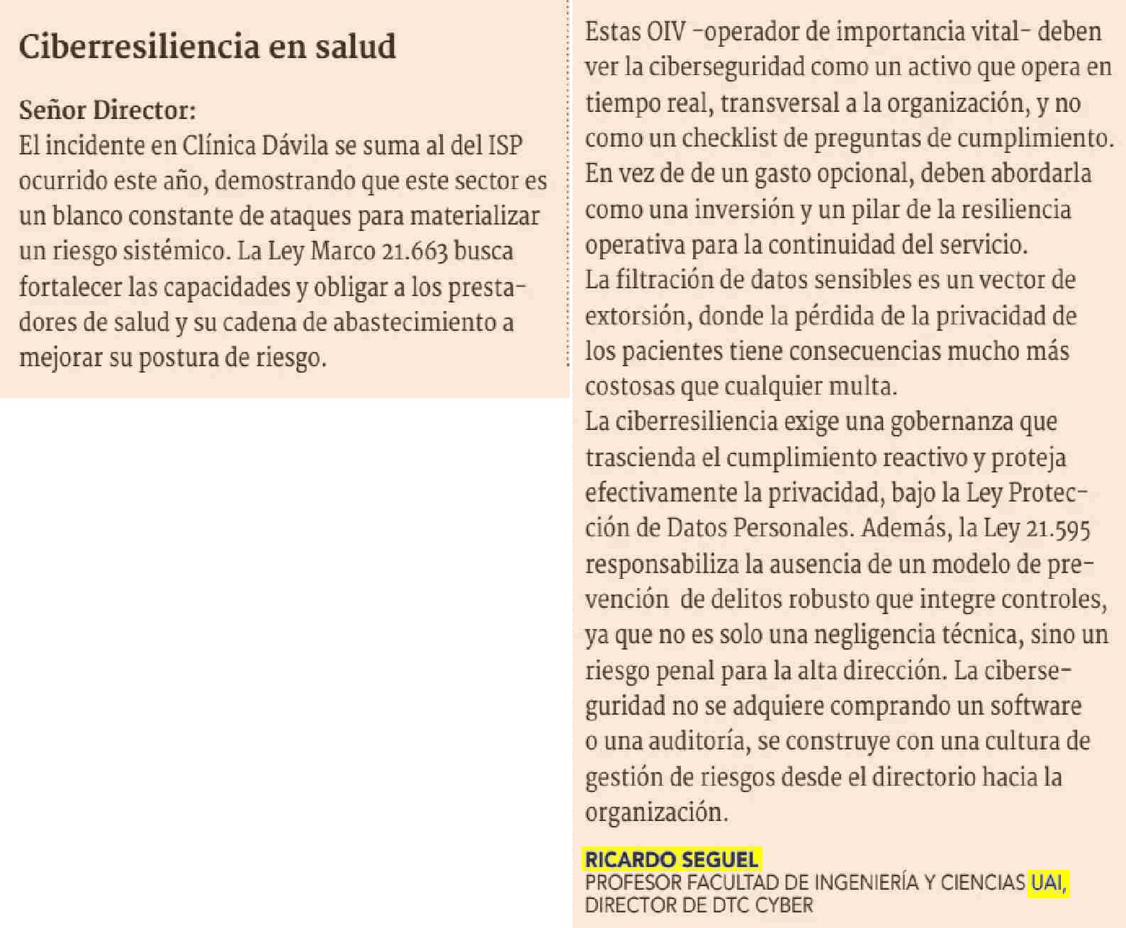 Cartas: Ciberresiliencia en salud