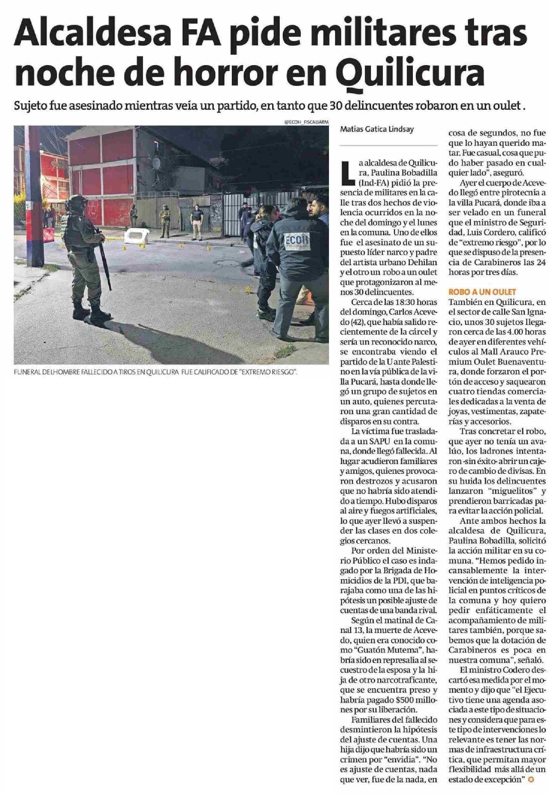 Alcaldesa FA pide militares tras noche de horror en Quilicura