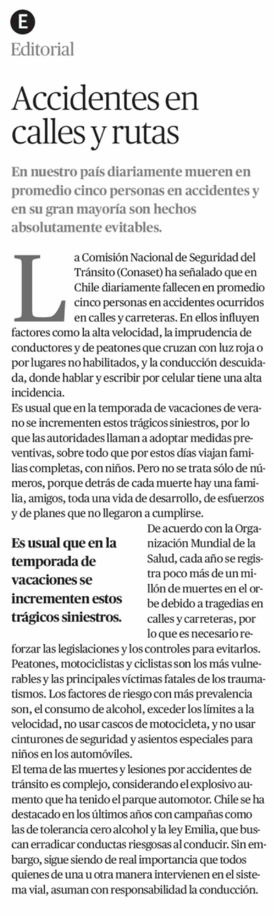 Editorial: Accidentes en calles y rutas