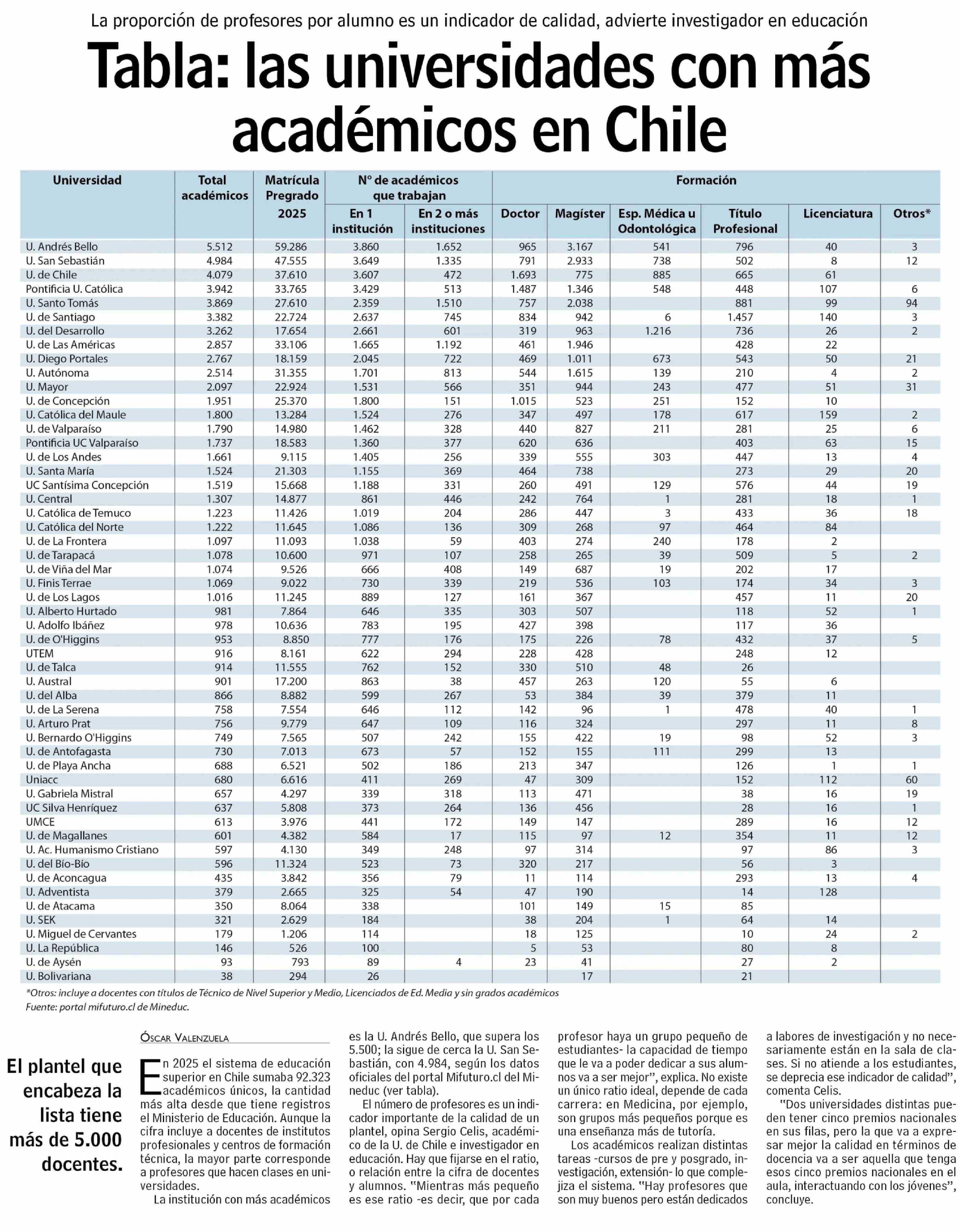 Tabla: las universidades con más académicos en Chile