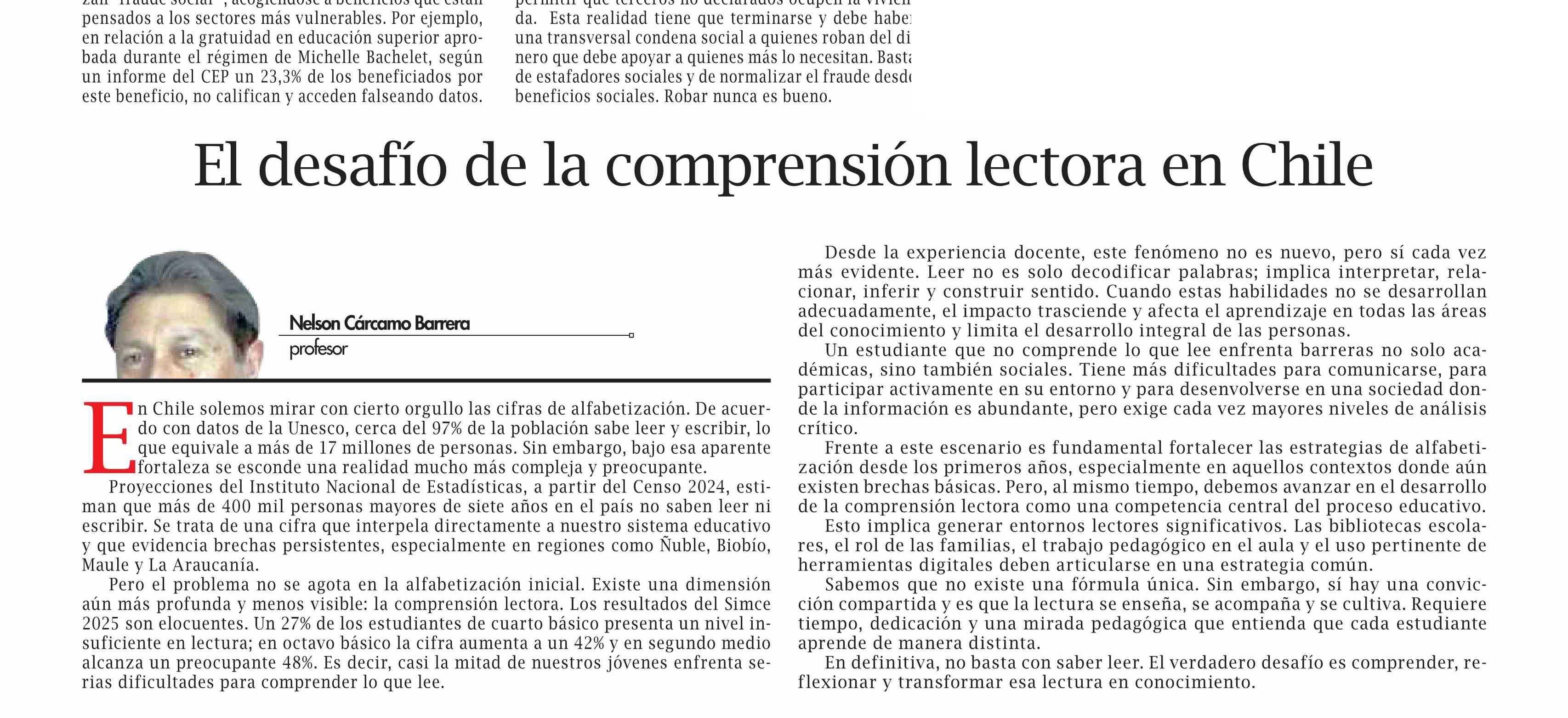 COLUMNAS DE OPINIÓN: El desafio de la comprensión lectora en Chile
