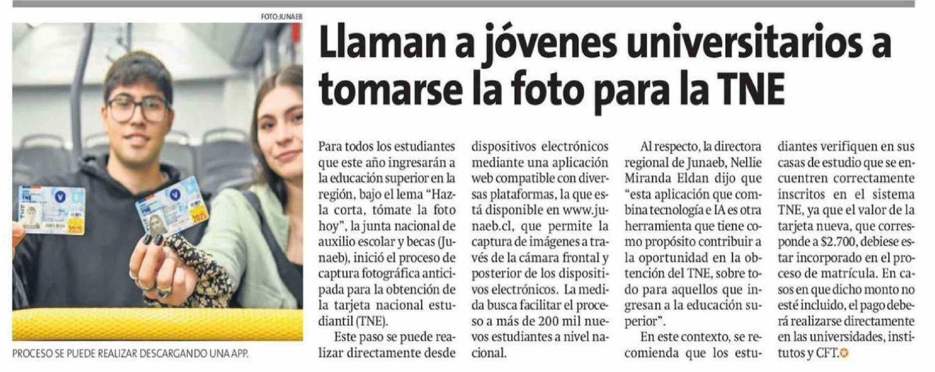 Llaman a jóvenes universitarios a tomarse la foto para la TNE