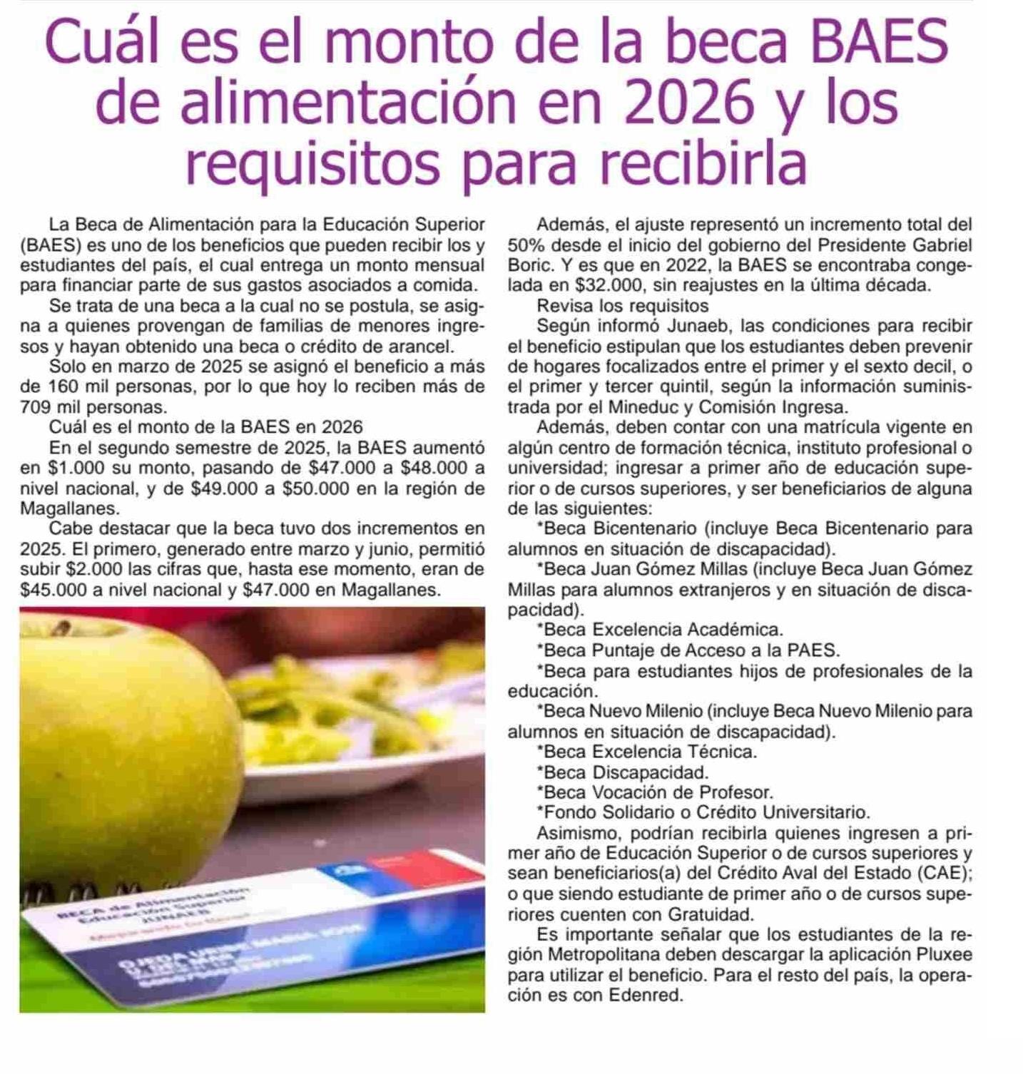Cuál es el monto de la beca BAES de alimentación en 2026 y los requisitos para recibirla