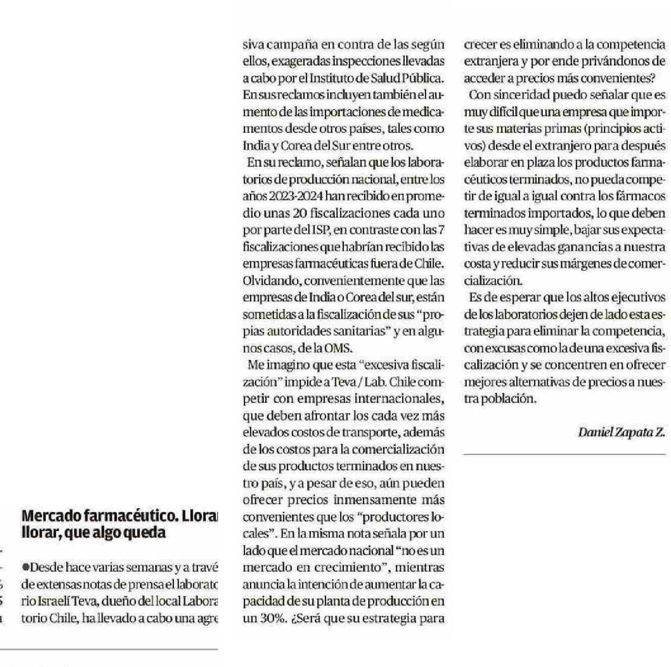 CARTAS: Mercado farmacéutico. Llorar Morar, que algo queda