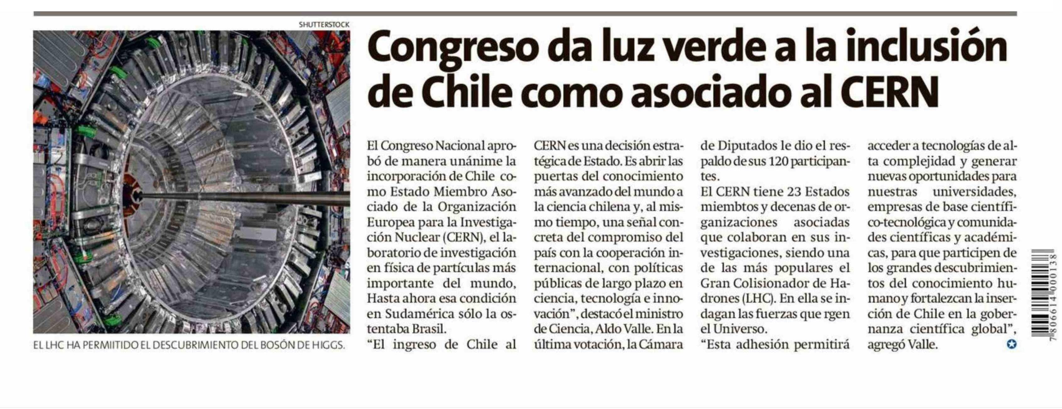 Congreso da luz verde a la inclusión de Chile como asociado al CERN