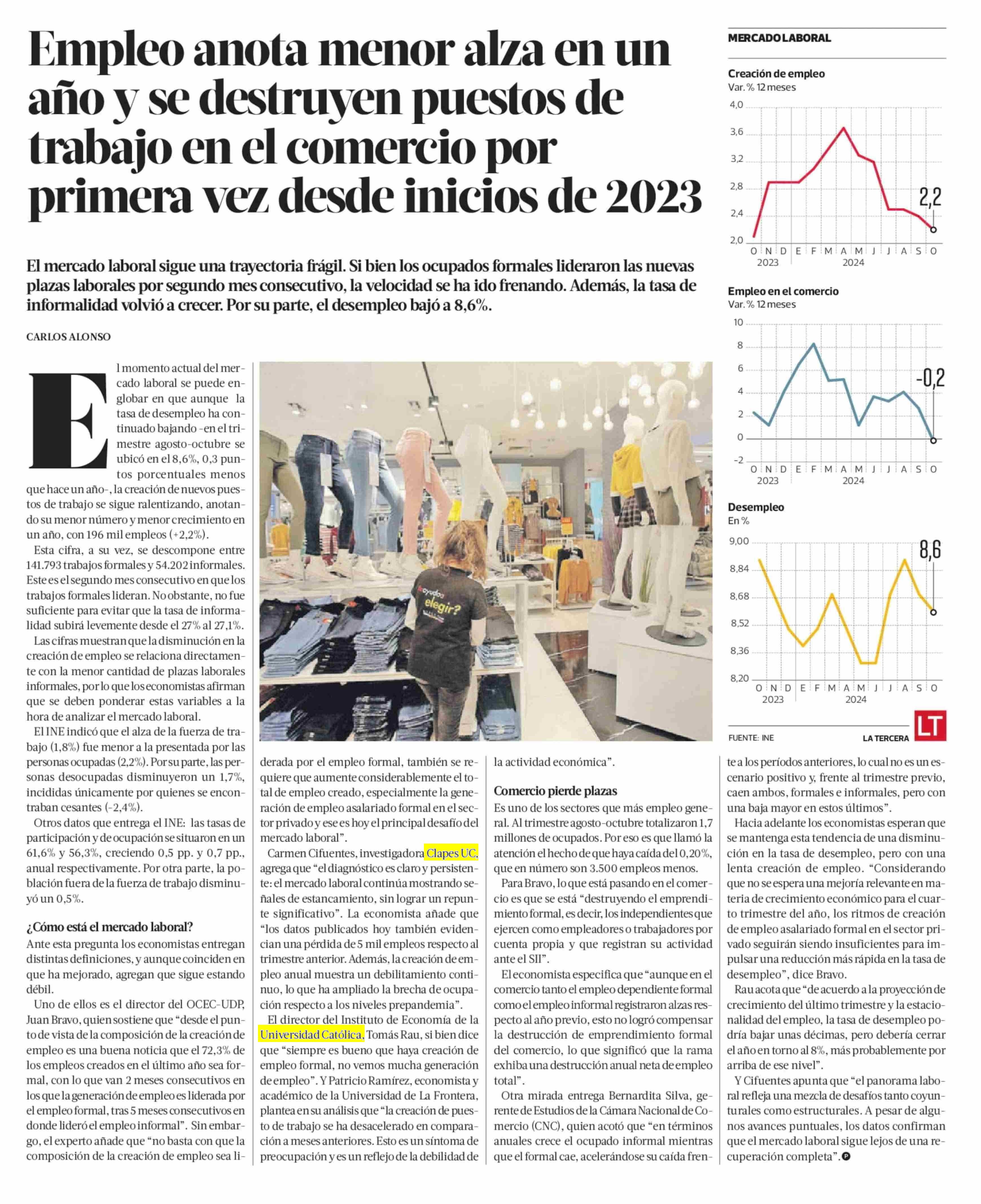 Empleo anota menor alza en un año y se destruyen puestos de trabajo en el comercio por primera vez desde inicios de 2023