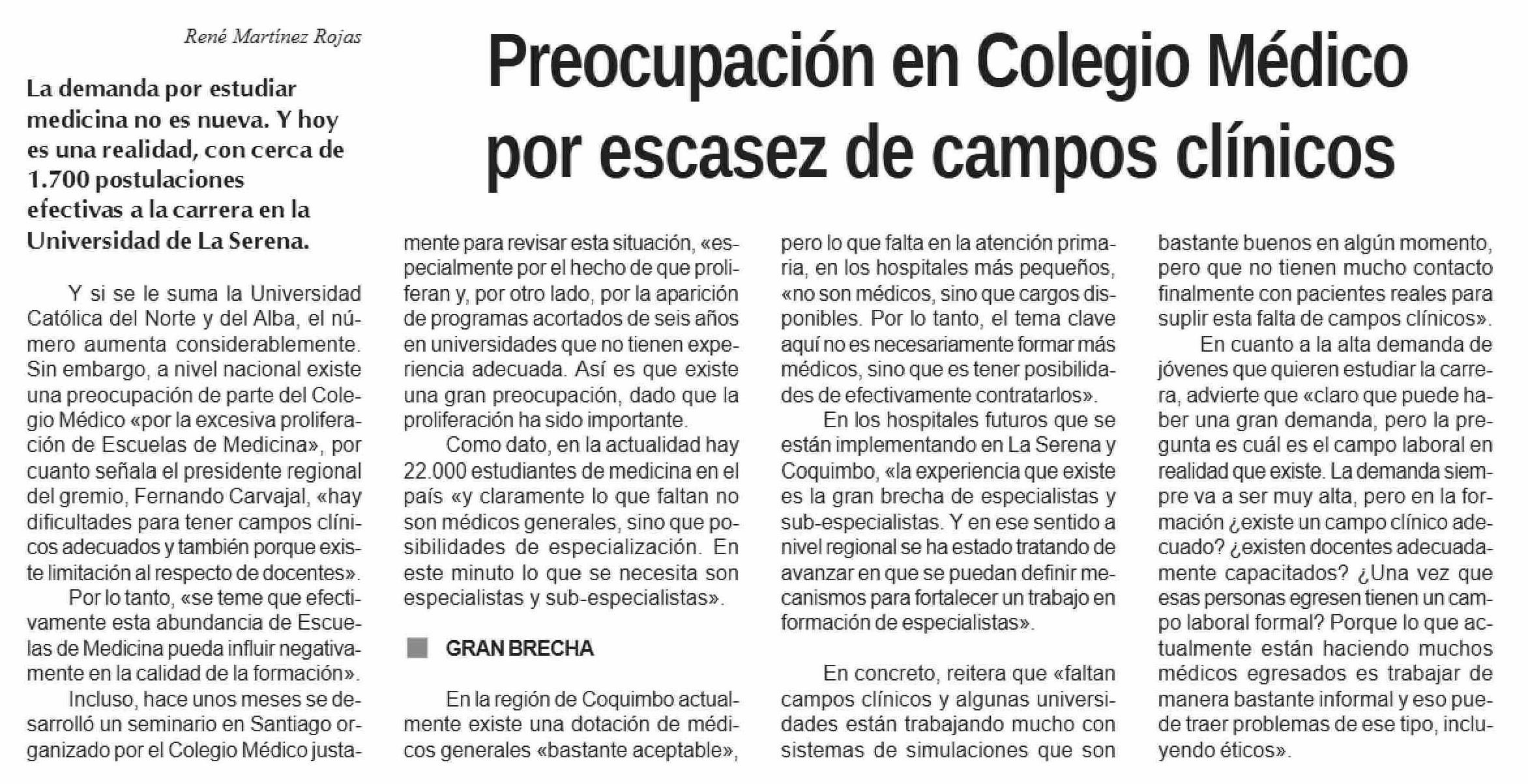 Preocupación en Colegio Médico por escasez de campos clínicos