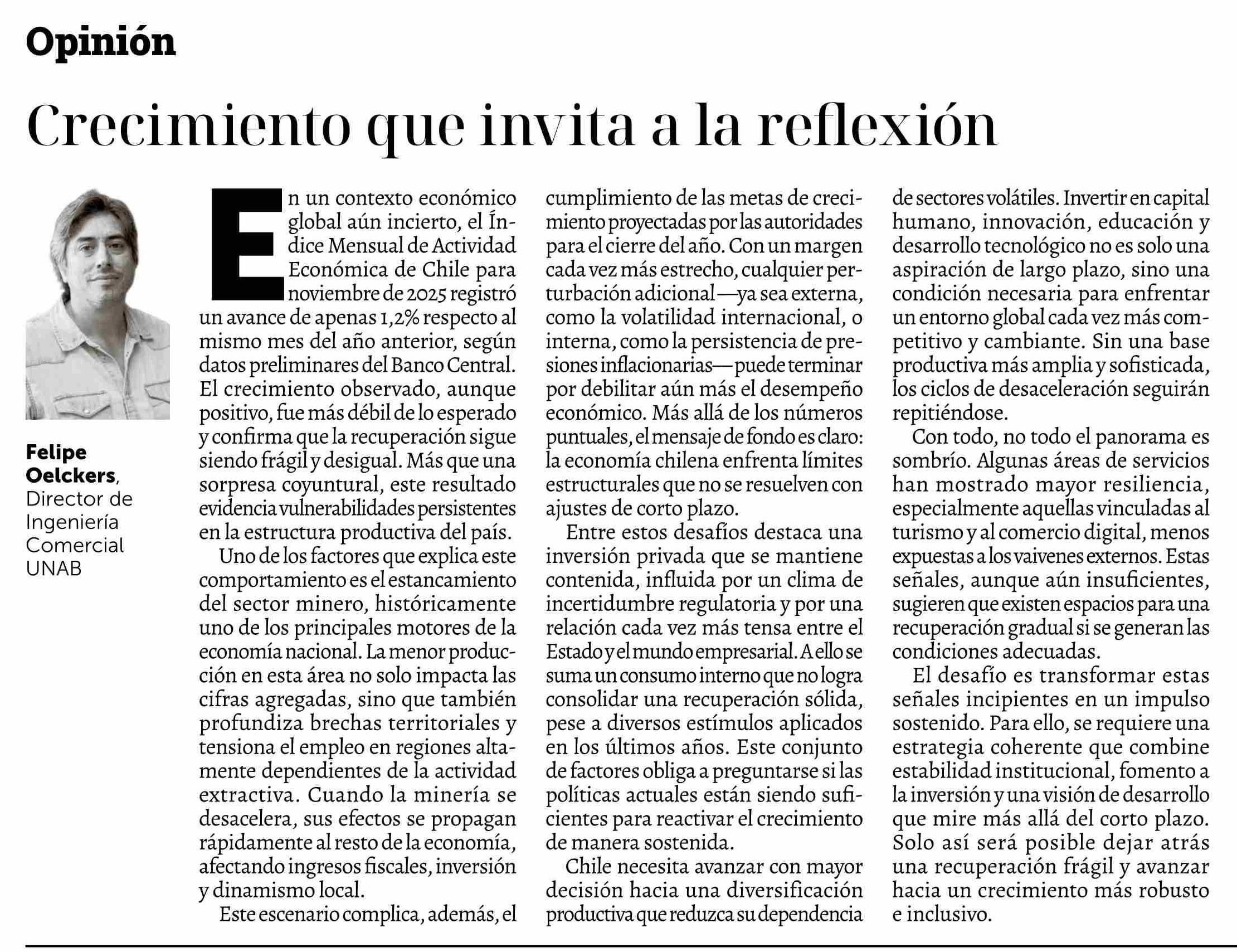Columnas de Opinión: Crecimiento que invita a la reflexión