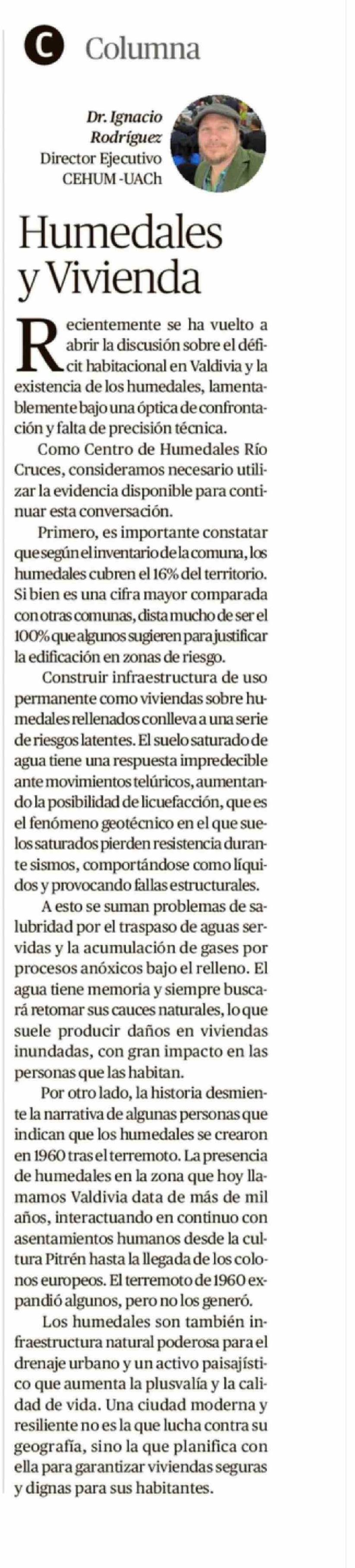 COLUMNAS DE OPINIÓN: Humedales y Vivienda