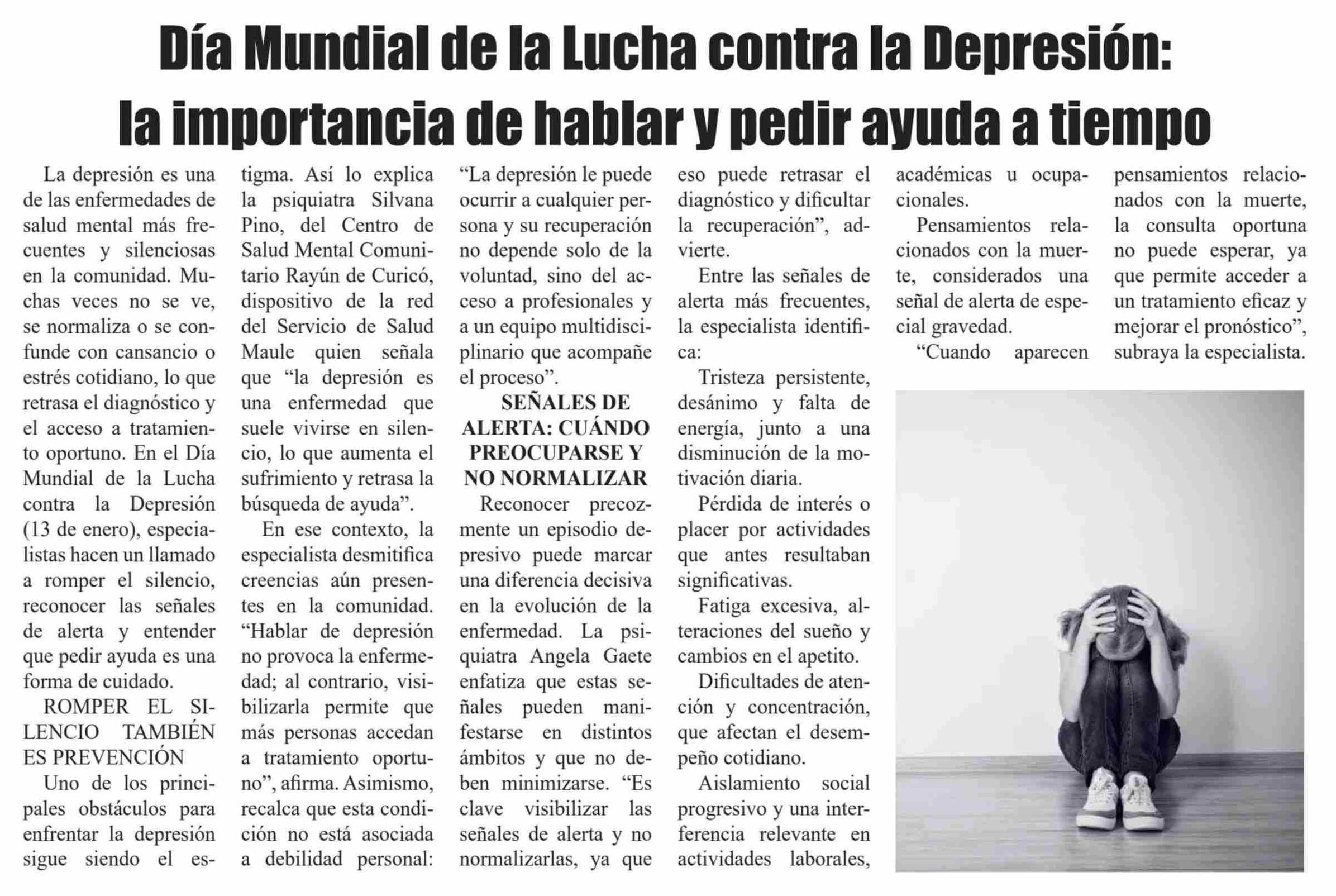 Día Mundial de la Lucha contra la Depresión: la importancia de hablar y pedir ayuda a tiempo