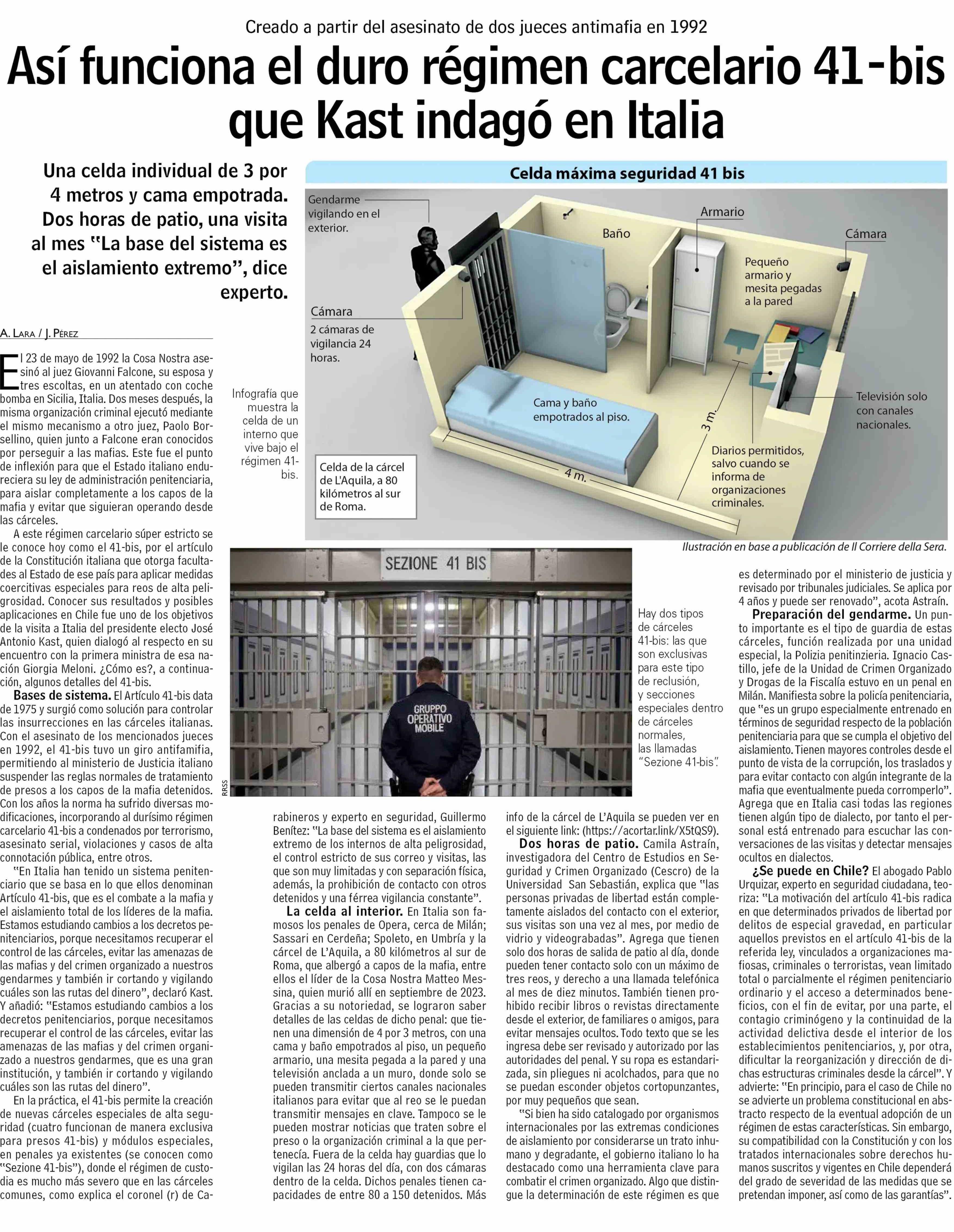 Así funciona el duro régimen carcelario 41-bis aque Kast indadó en Italia