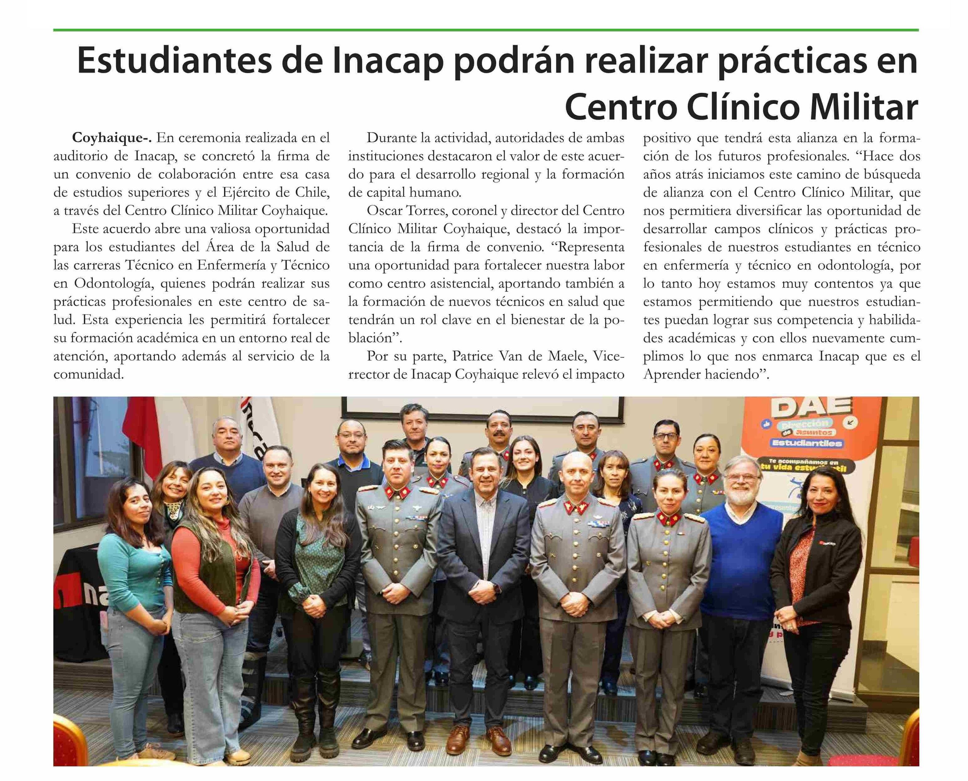 Estudiantes de Inacap podrán realizar prácticas en Centro Clínico Militar
