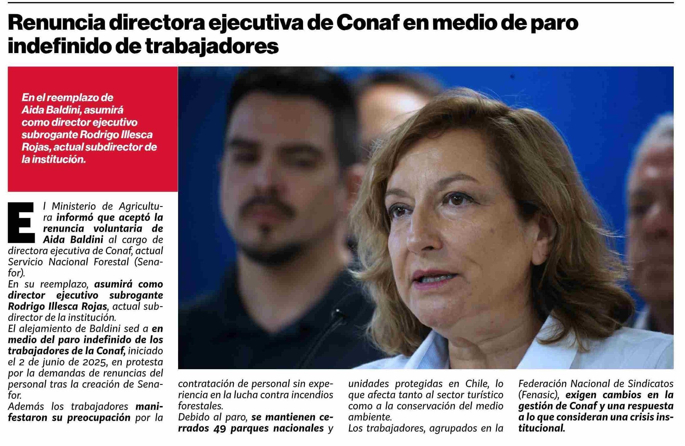 Renuncia directora ejecutiva de Conaf en medio de paro indefinido de trabajadores