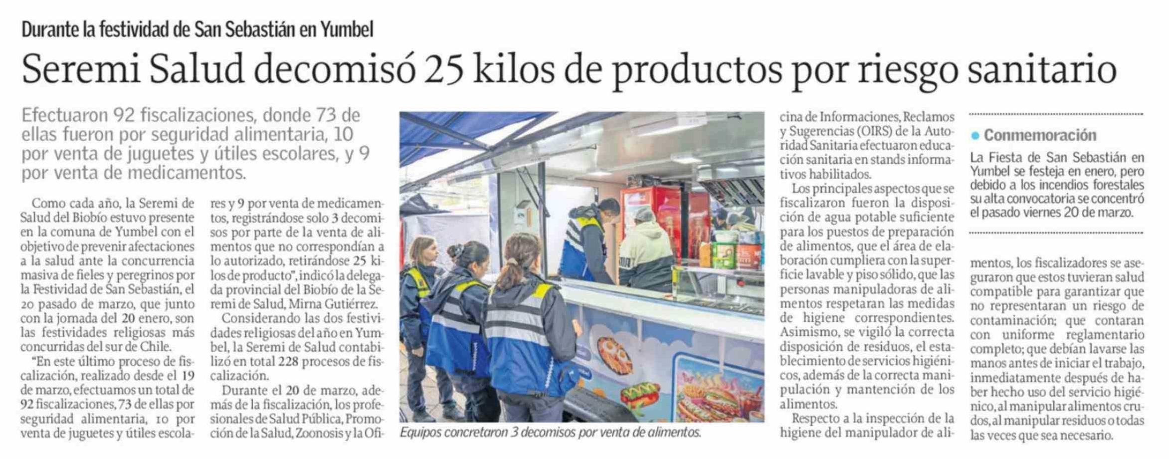 Seremi Salud decomisó 25 kilos de productos por riesgo sanitario