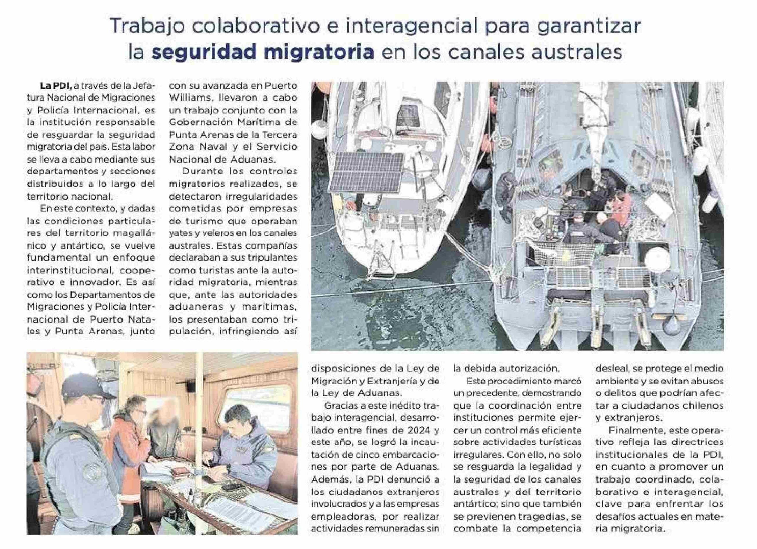 Trabajo colaborativo e interagencial para garantizar la seguridad migratoria en los canales australes
