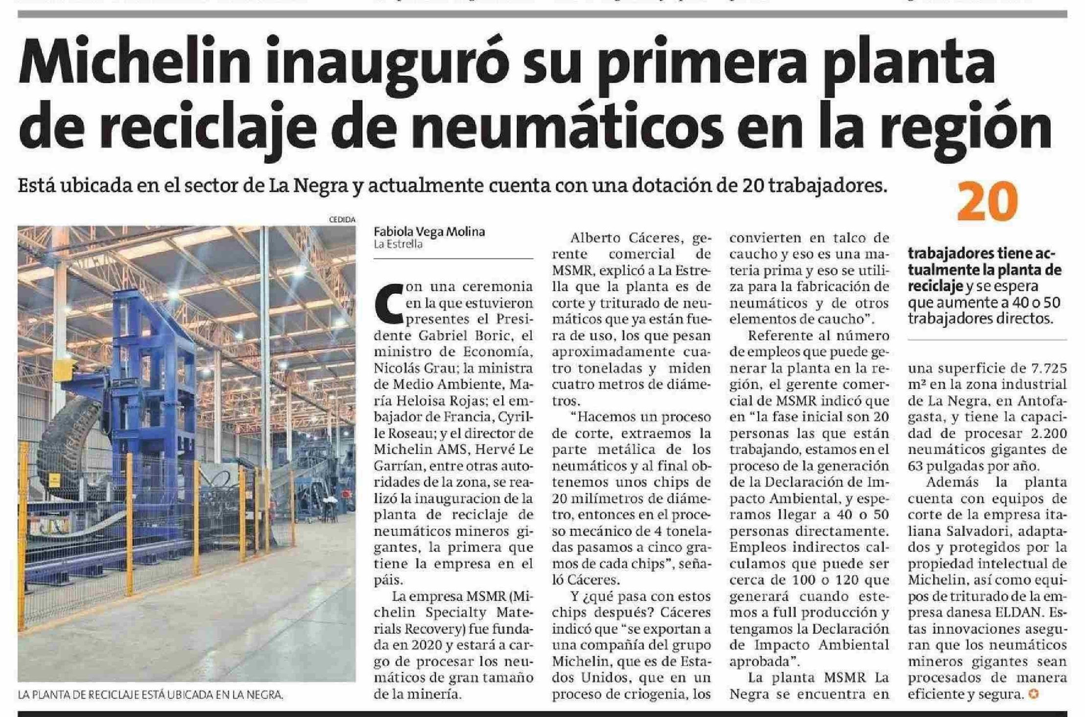 Michelin inauguró su primera planta de reciclaje de neumáticos en la región