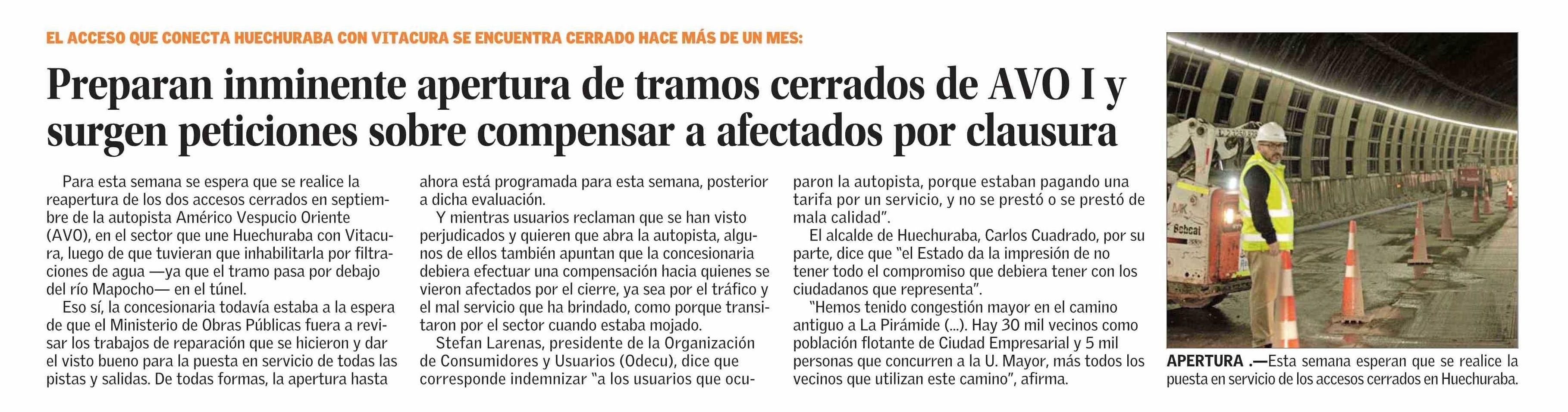 Preparan inminente apertura de tramos cerrados de AVO I y surgen peticiones sobre compensar a afectados por clausura