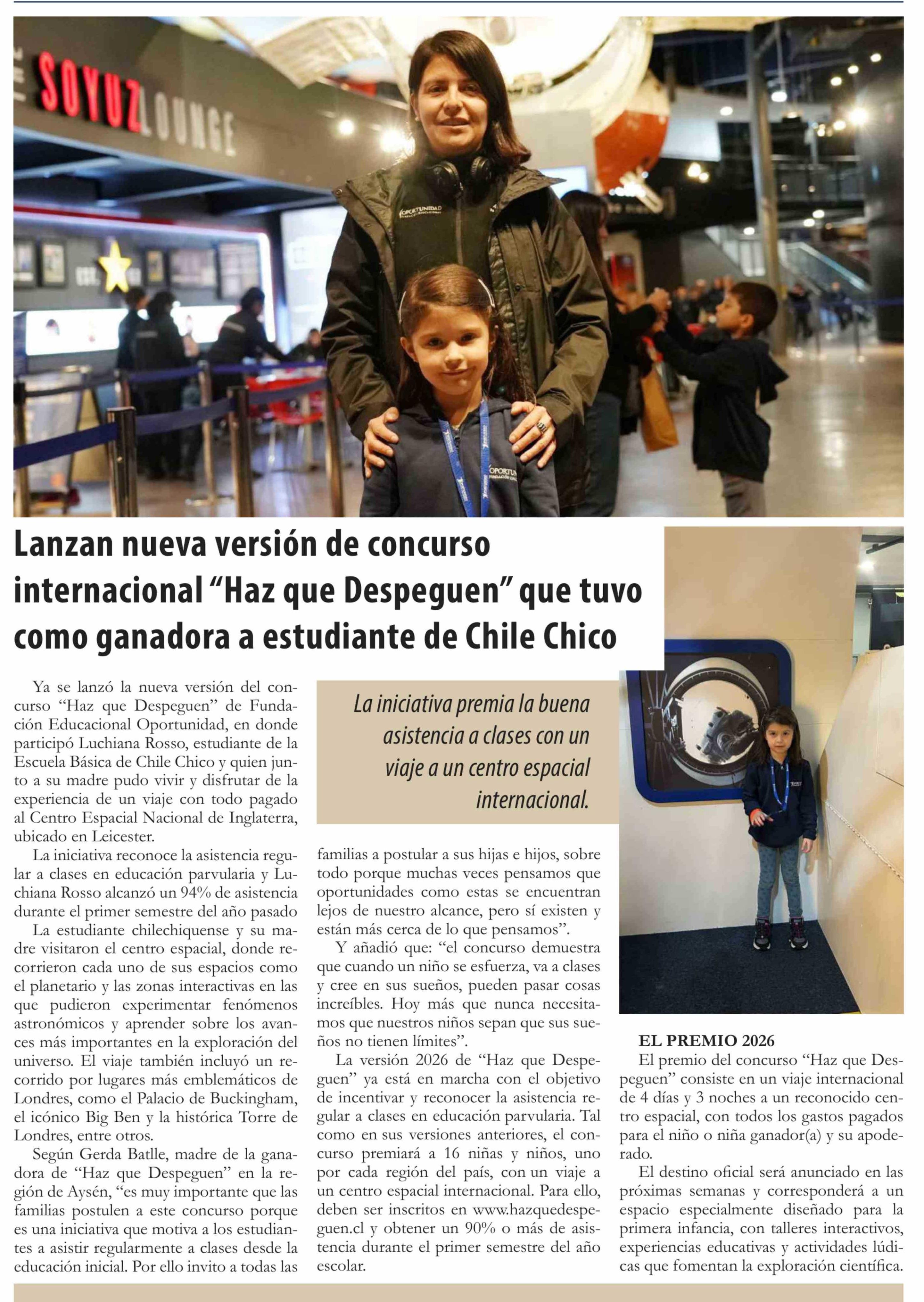 Lanzan nueva versión de concurso internacional "Haz que Despeguen" que tuvo como ganadora a estudiante de Chile Chico
