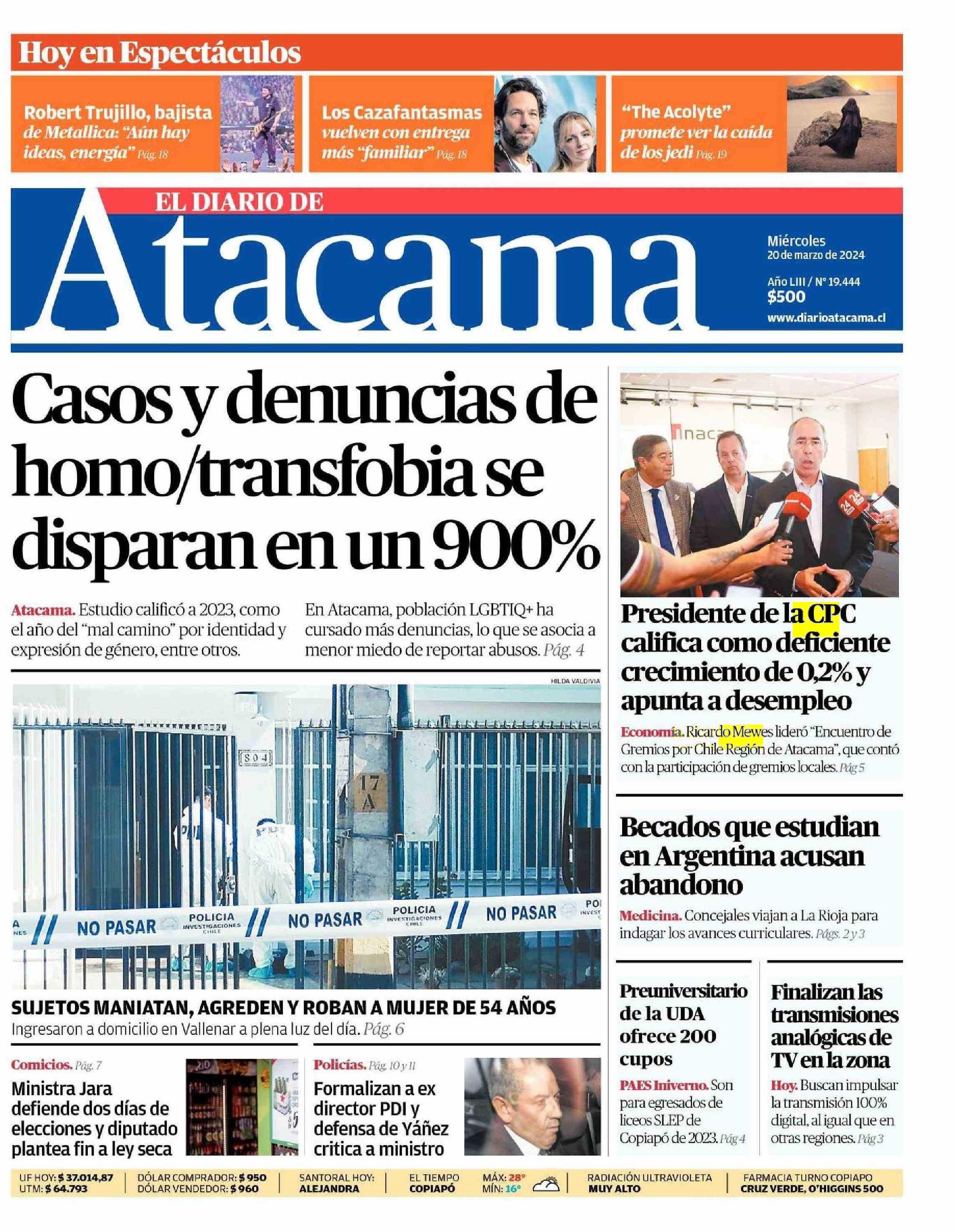 PORTADA EL DIARIO DE ATACAMA - CHILE