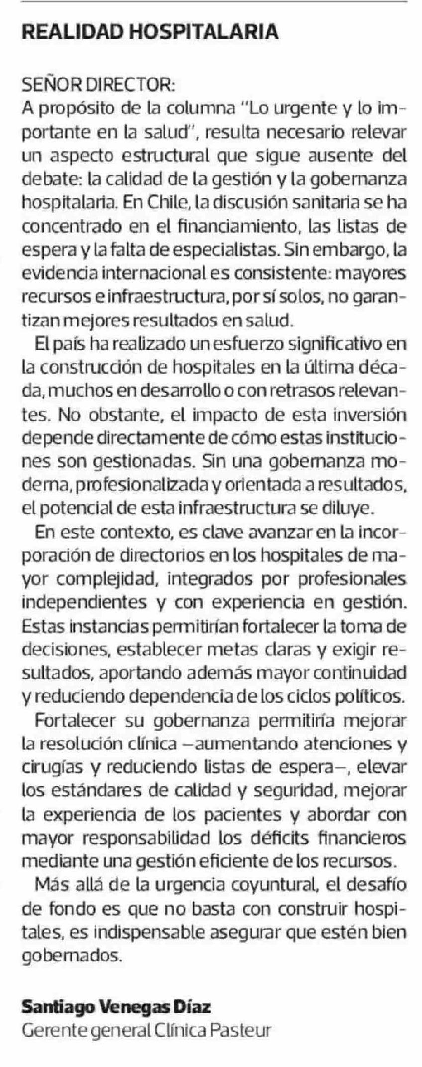 Cartas: REALIDAD HOSPITALARIA