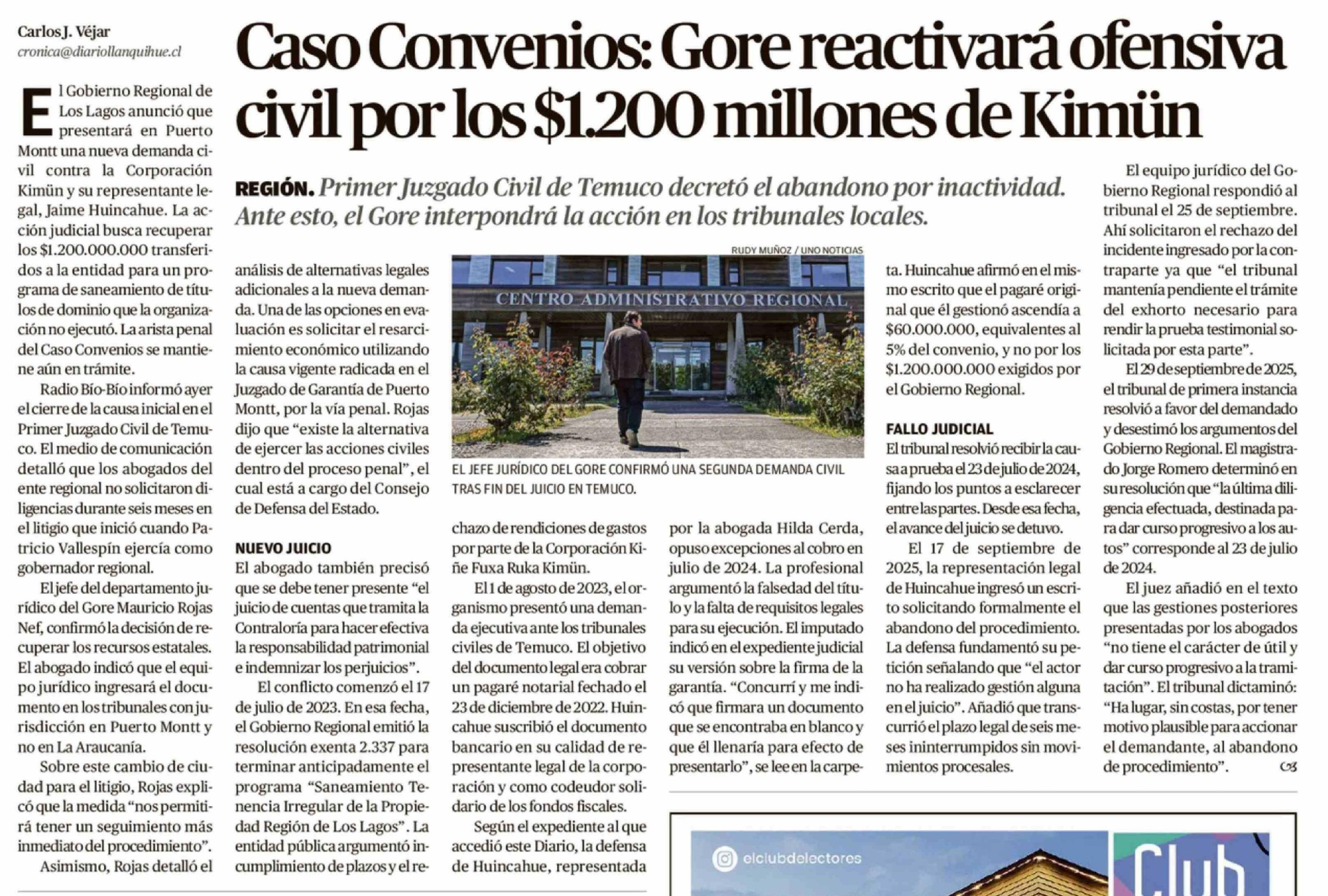 Caso Convenios: Gore reactivará ofensiva civil por los $1.200 millones de Kimün
