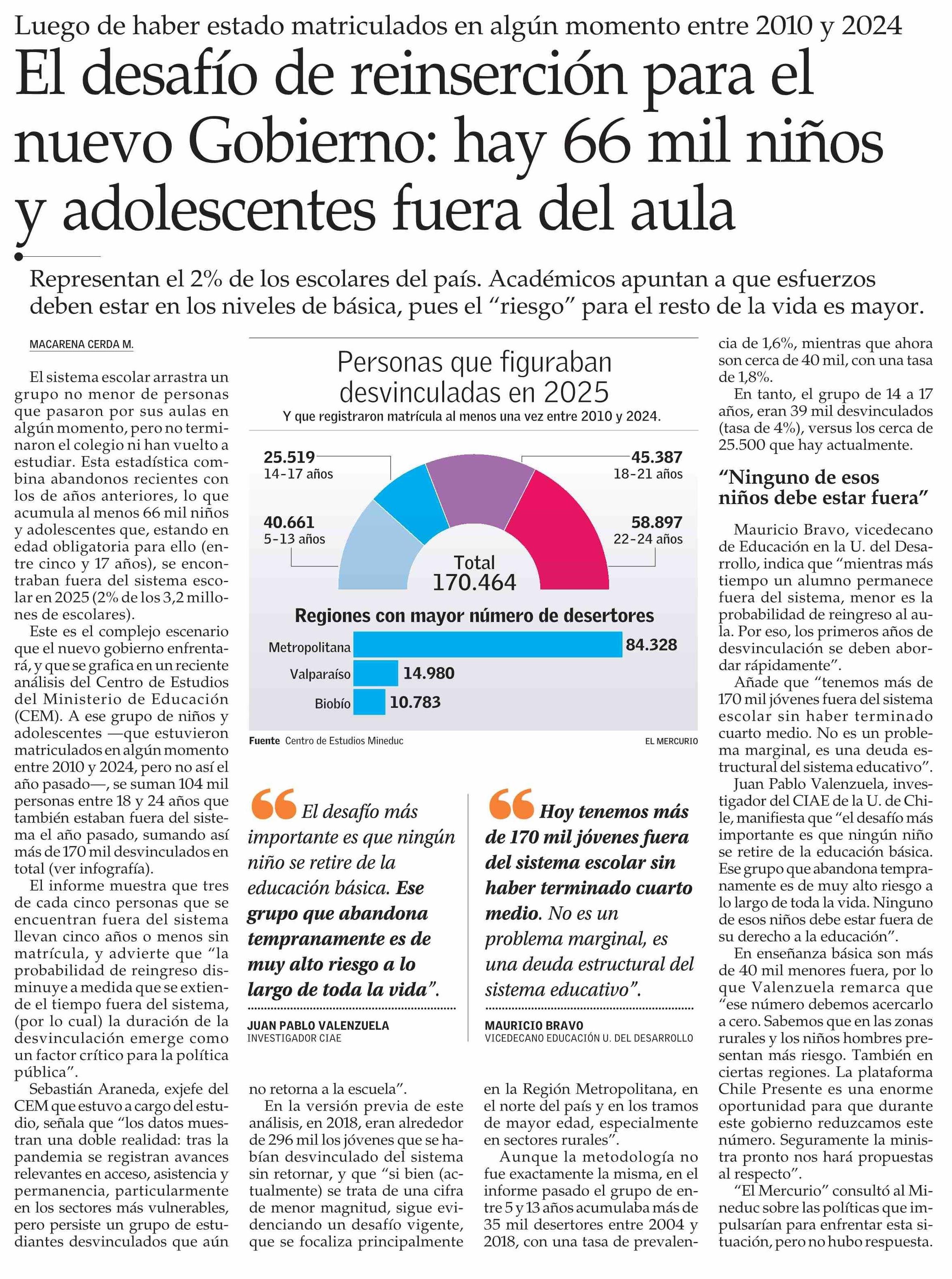 El desafío de reinserción para el nuevo Gobierno: hay 66 mil niños y adolescentes fuera del aula