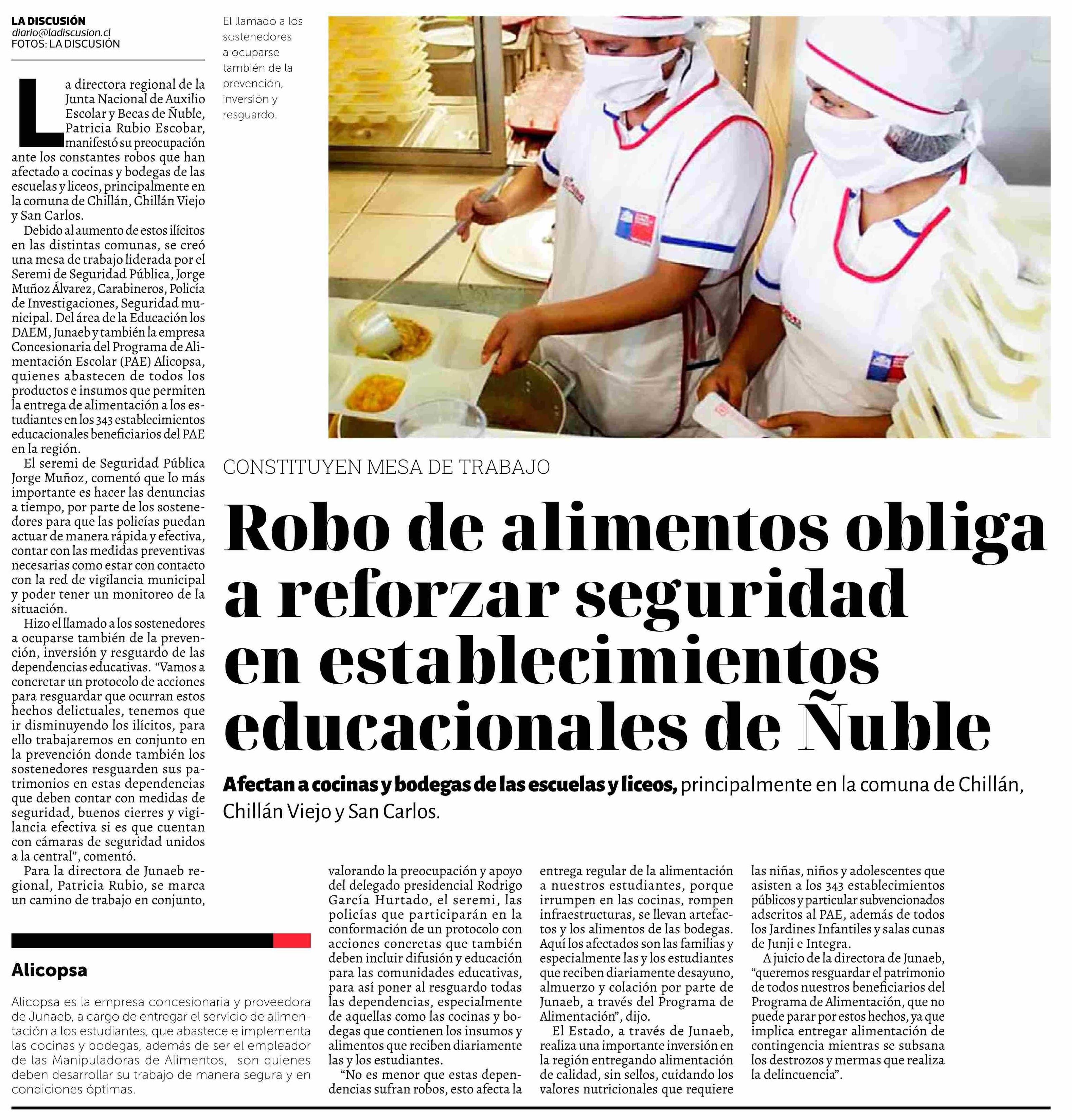 Robo de alimentos obliga a reforzar seguridad en establecimientos educacionales de Ñuble