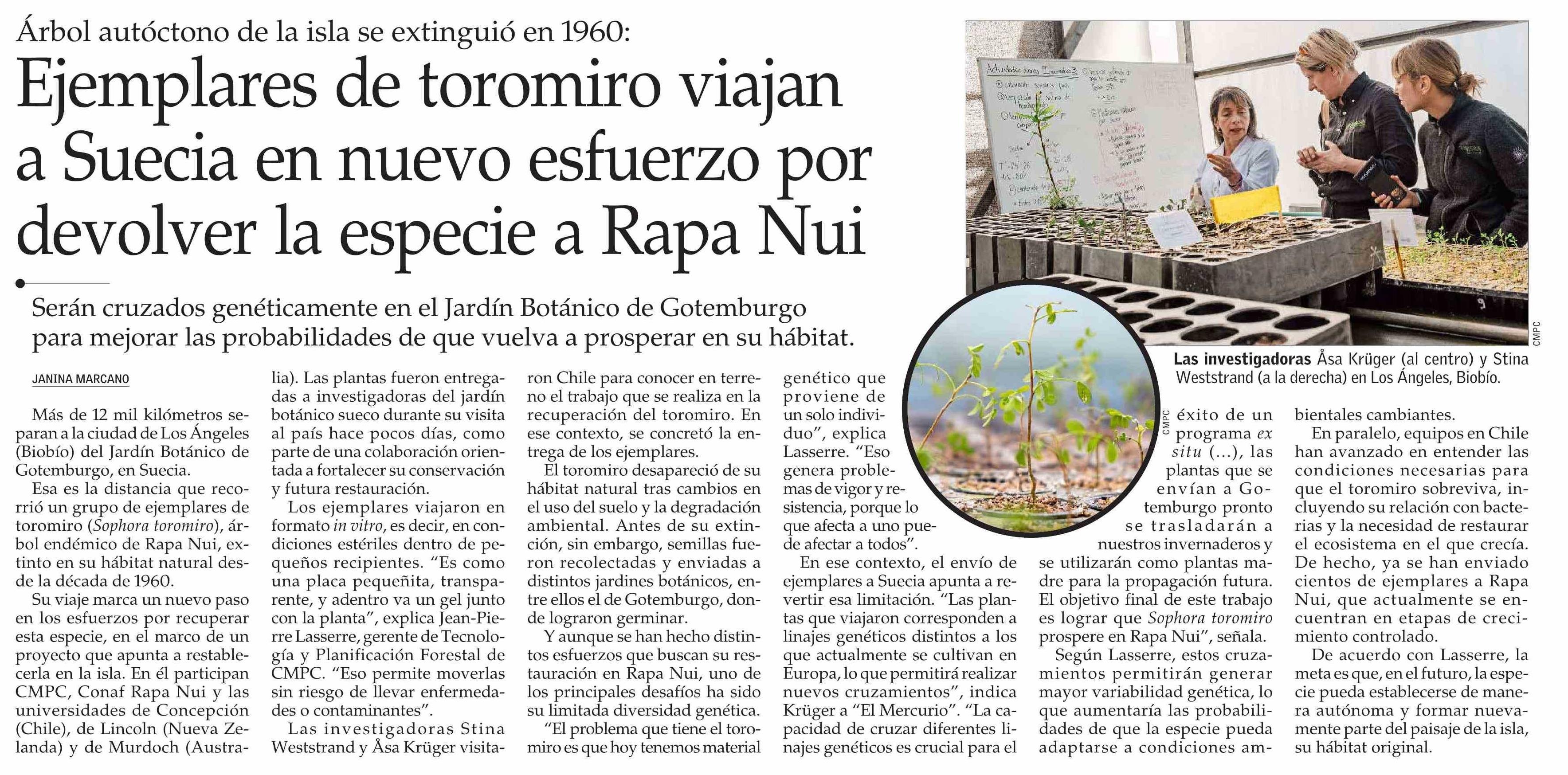 Ejemplares de toromiro viajan a Suecia en nuevo esfuerzo por devolver la especie a Rapa Nui