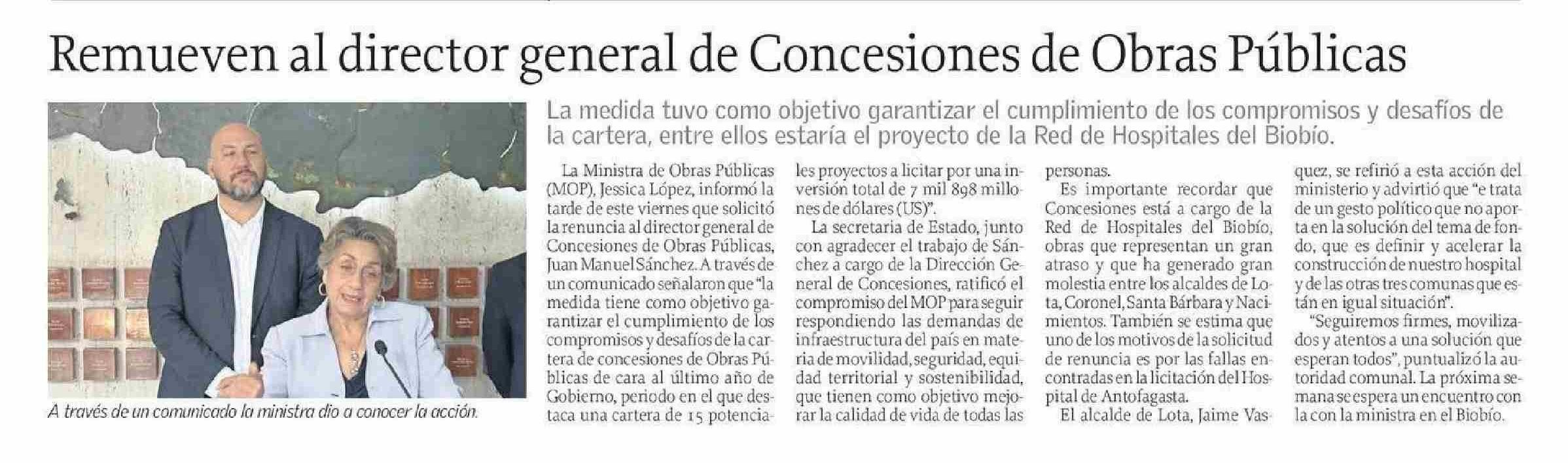 Remueven al director general de Concesiones de Obras Públicas