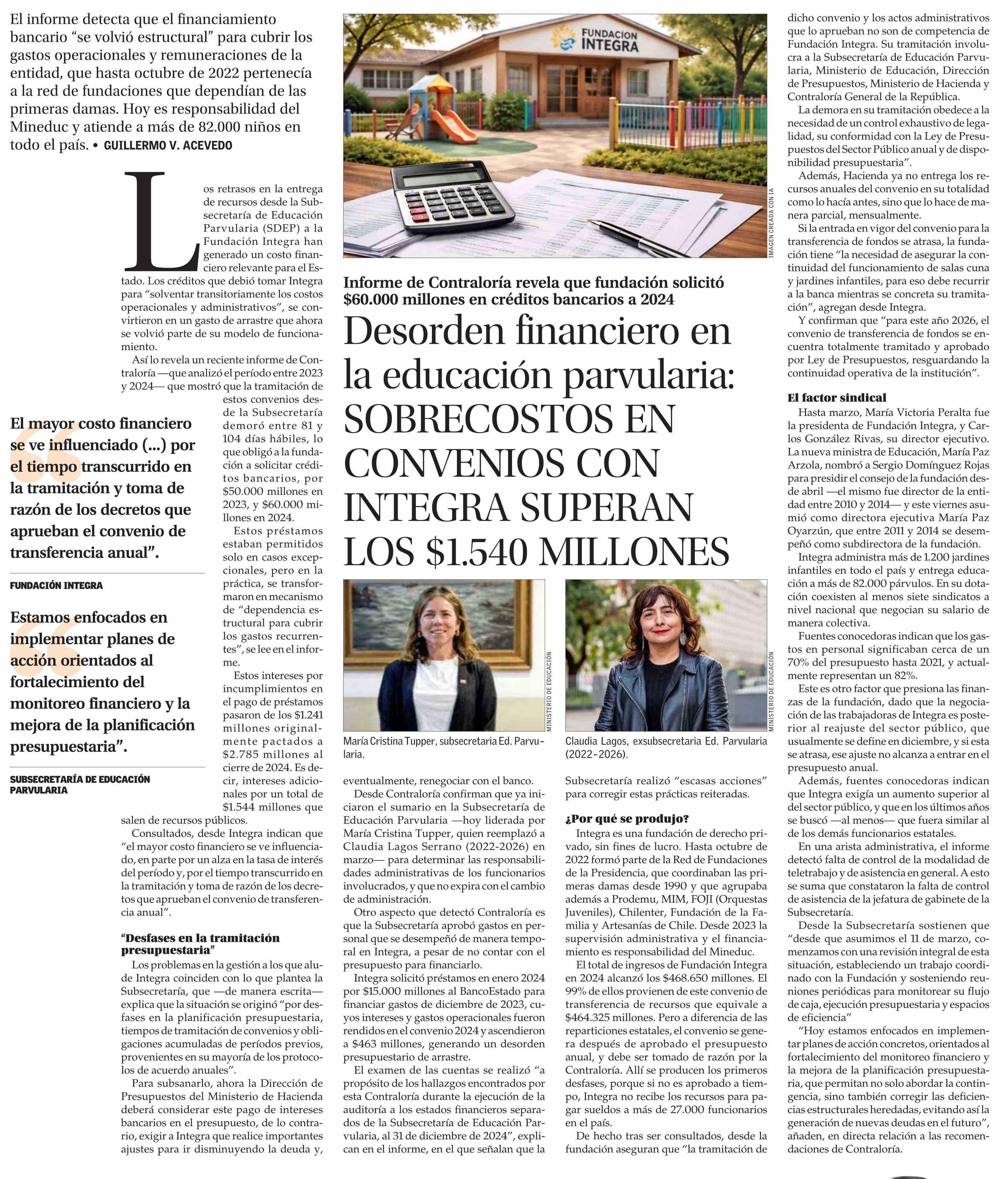 Desorden financiero en la educación parvularia: SOBRECOSTOS EN CONVENIOS CON INTEGRA SUPERAN LOS $1.540 MILLONES