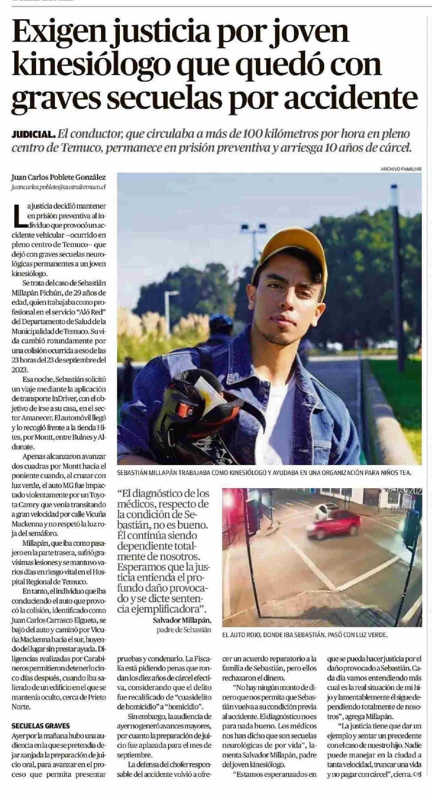 Exigen justicia por joven kinesiólogo que quedó con graves secuelas por accidente