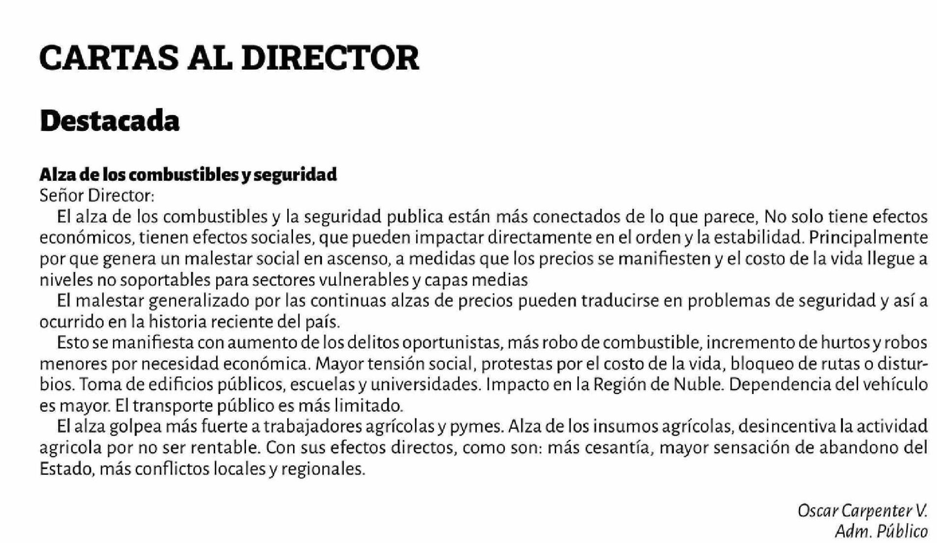 Título: CARTAS: Alza de los combustibles y seguridad