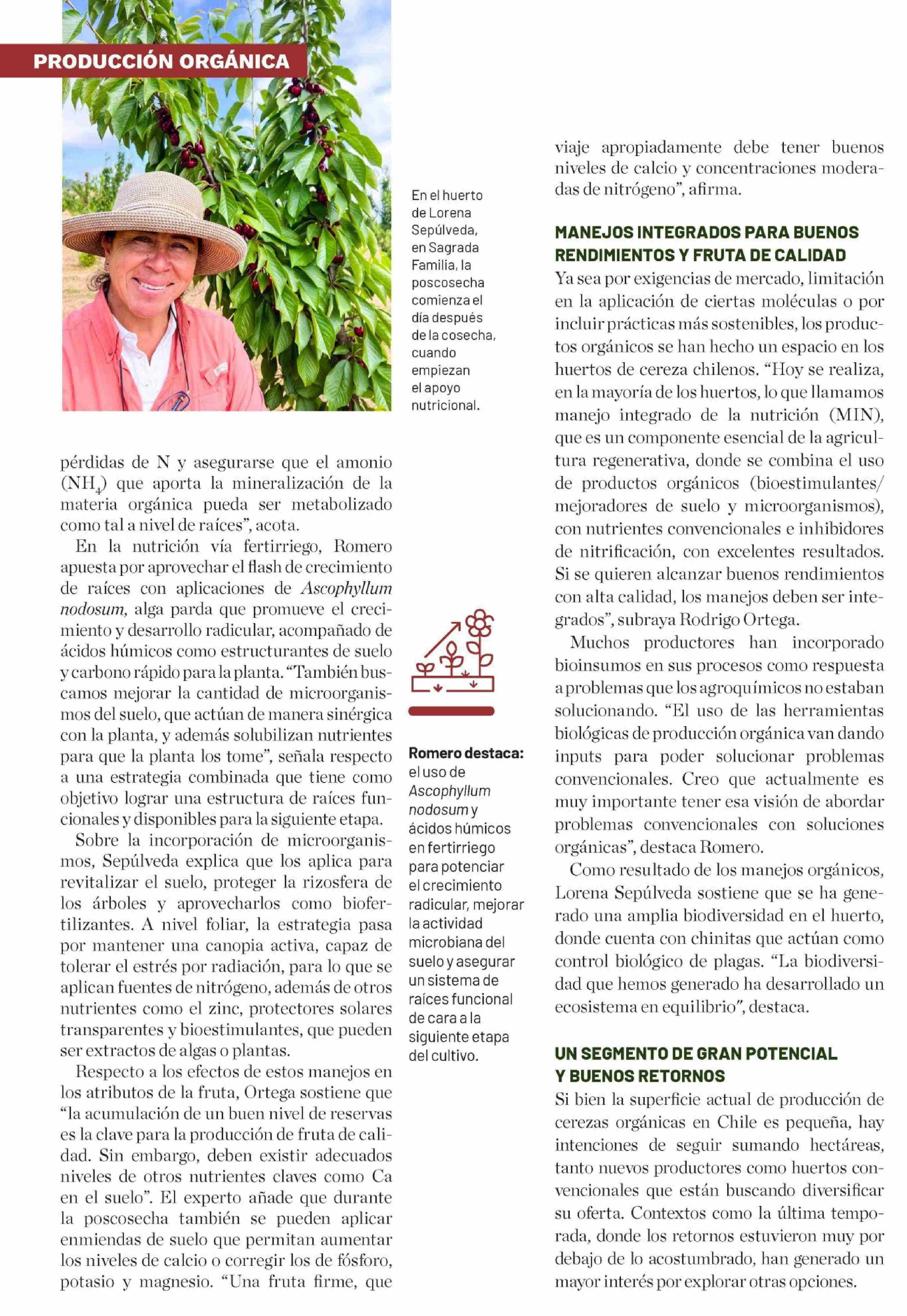 Cerezos luego de la cosecha, apoyo orgánico para una etapa clave en la construcdón de fruta