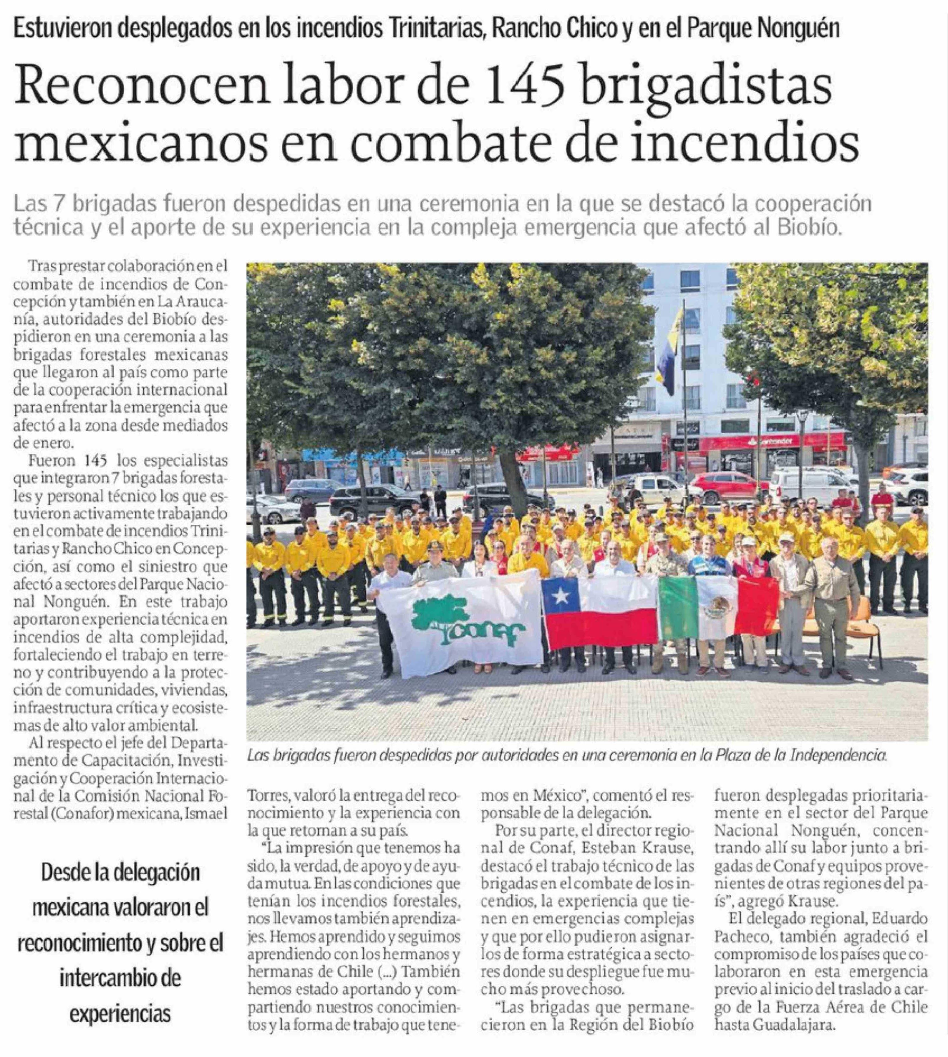 Título: Reconocen labor de 145 brigadistas mexicanos en combate de incendios