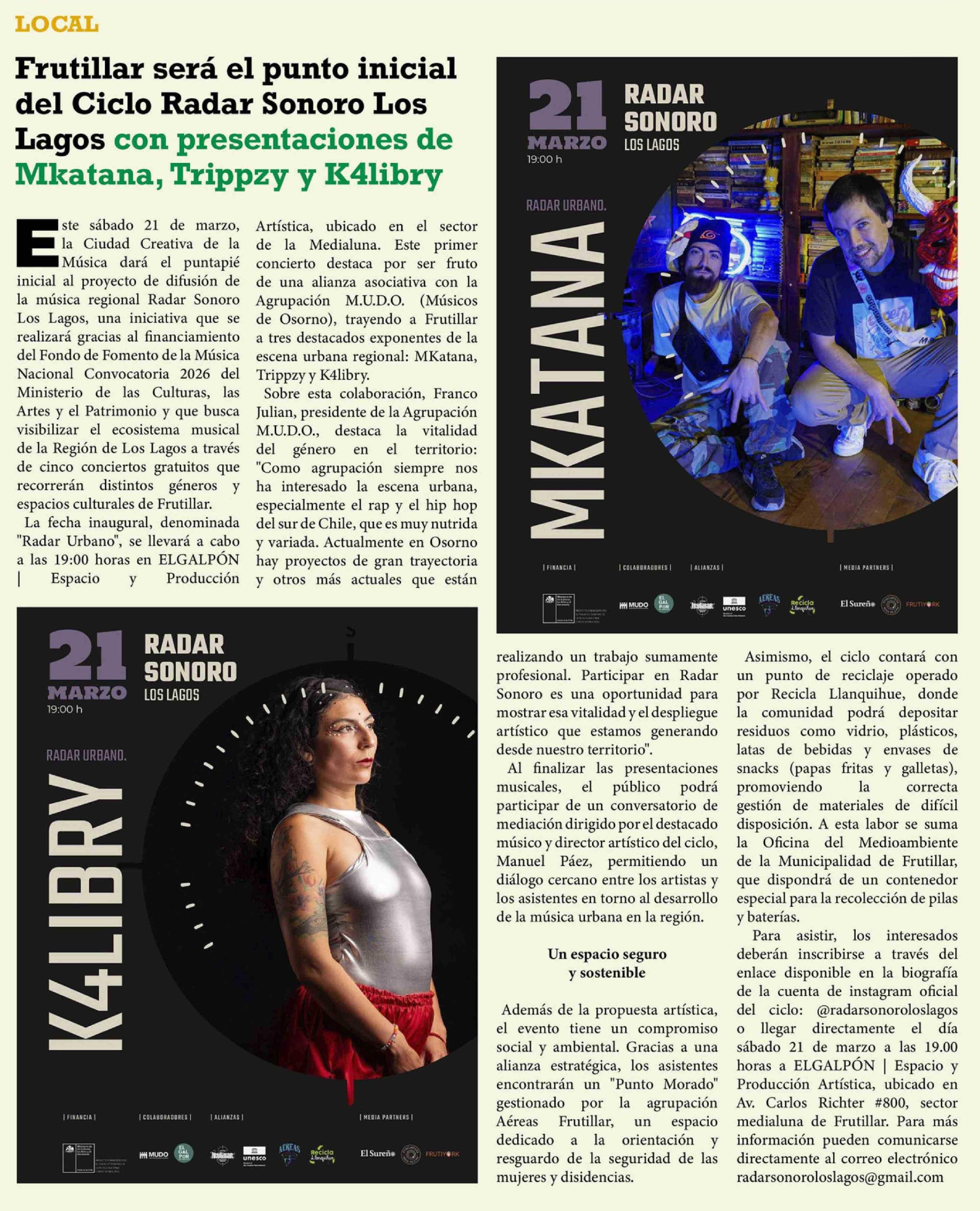 Frutillar será el punto inicial del Ciclo Radar Sonoro Los Lagos con presentaciones de Mkatana, Trippzy y K4libry