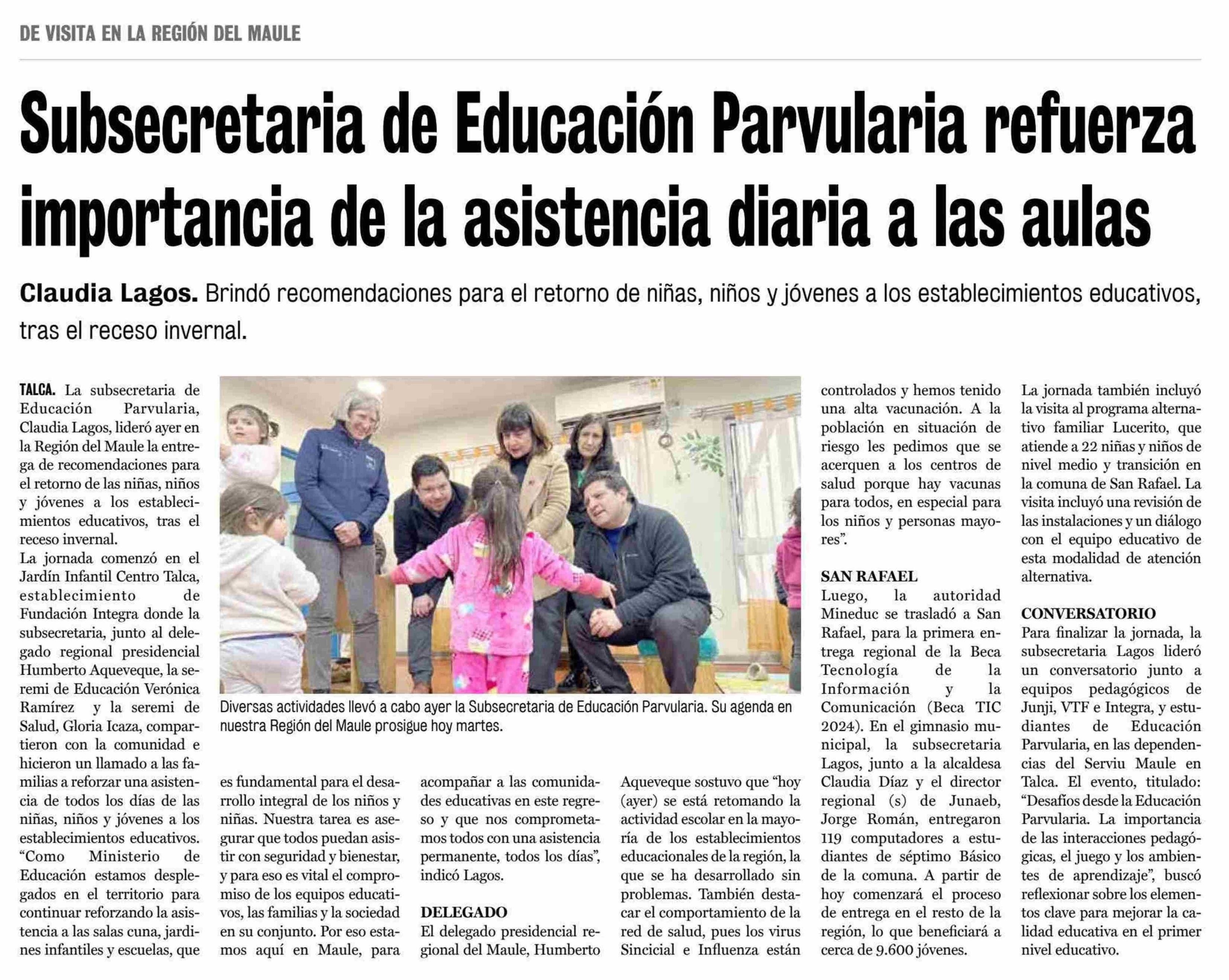 Subsecretaria de Educación Parvularia refuerza importancia de la asistencia diaria a las aulas