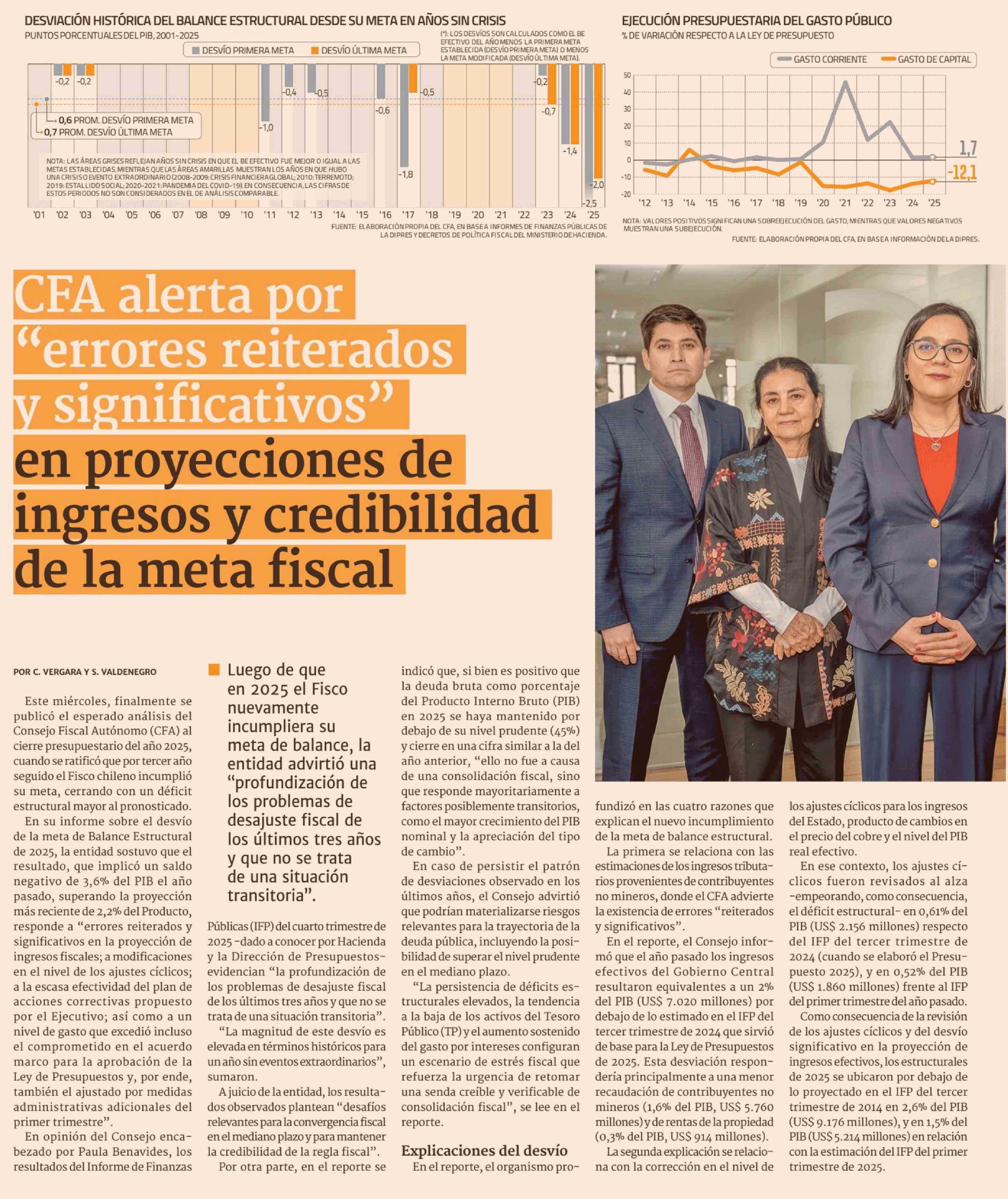 Título: CFA alerta por "errores reiterados y significativos' en proyecciones de ingresos y credibilidad de la meta fiscal