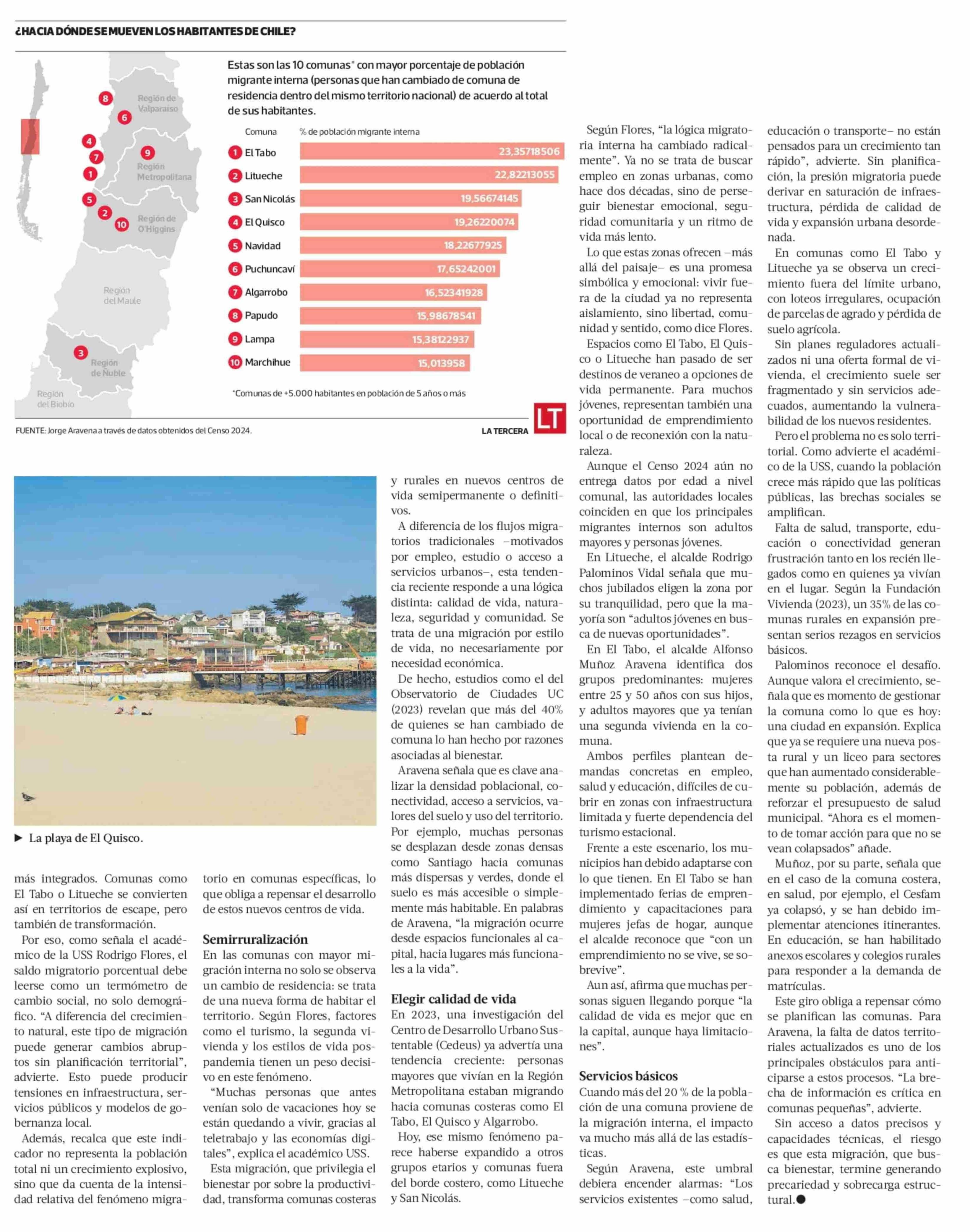 ¿A dónde están escapando los chilenos? Las 10 comunas con mayor migración interna