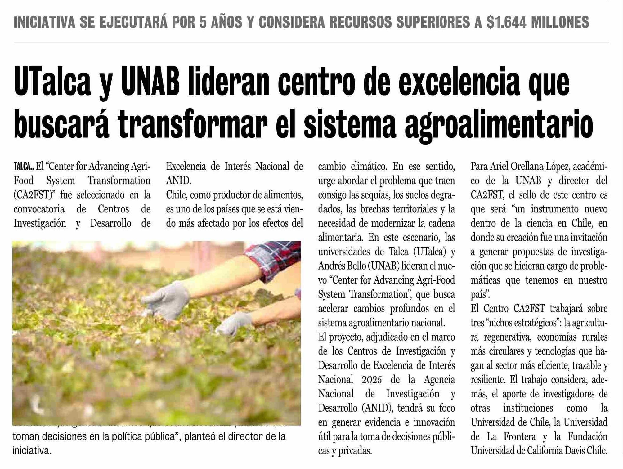 UTalca y UNAB lideran centro de excelencia que buscará transformar el sistema agroalimentario