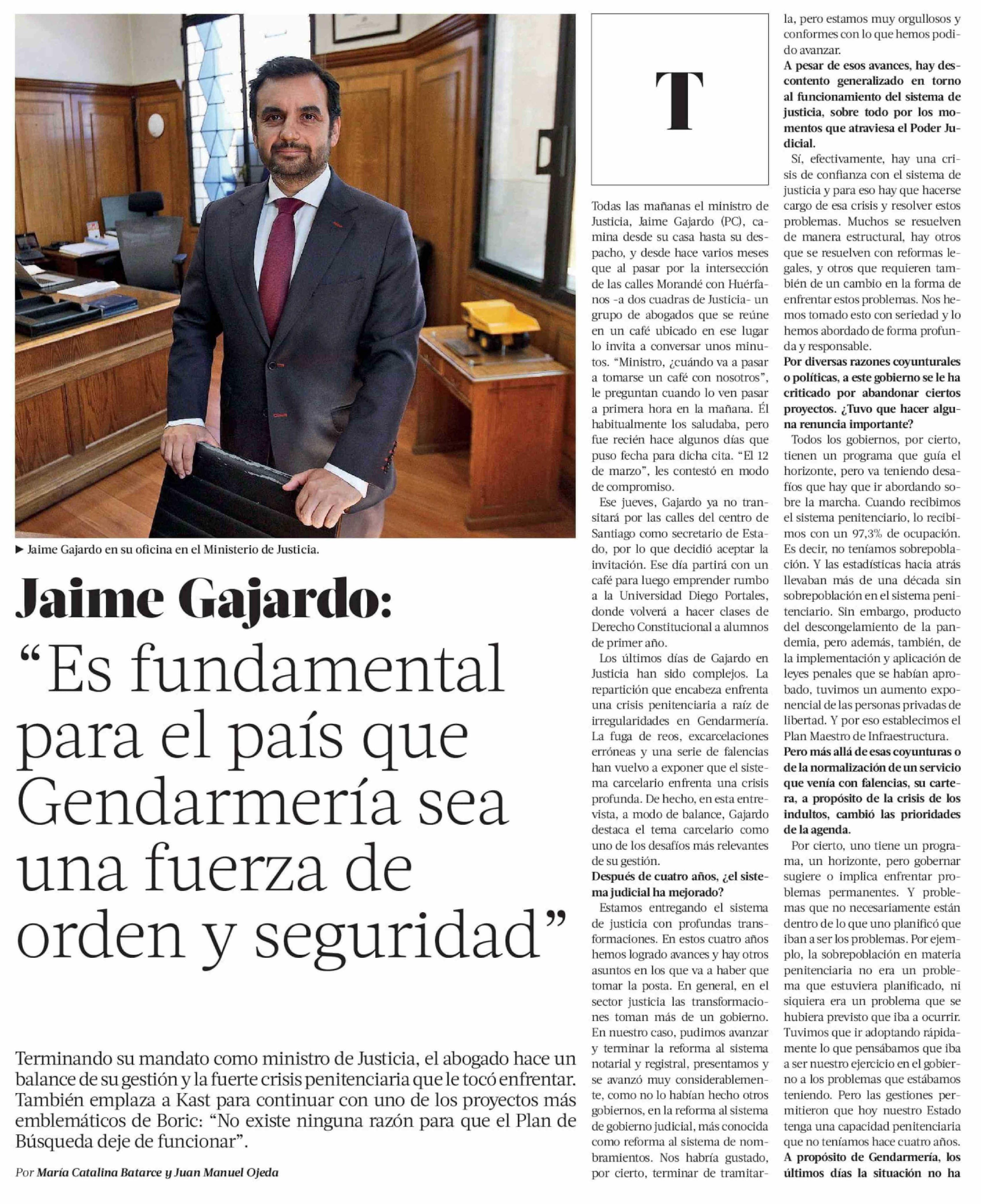 Jaime Gajardo: "Es fundamental para el país que Gendarmería sea una fuerza de orden y seguridad"