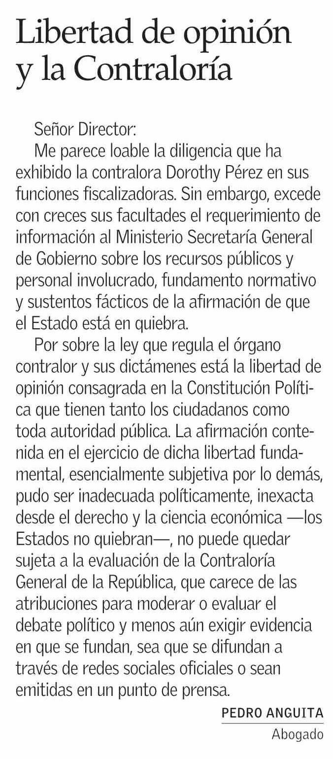 Cartas: Libertad de opinión y la Contraloría