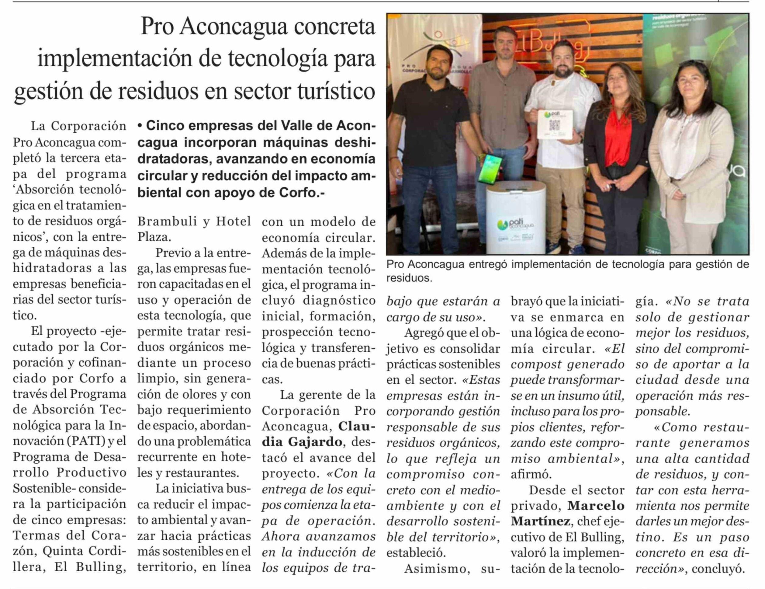 Pro Aconcagua concreta implementación de tecnología para gestión de residuos en sector turístico